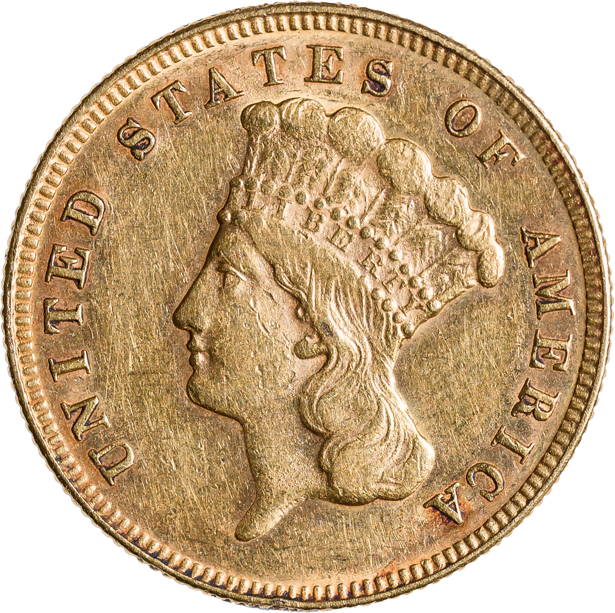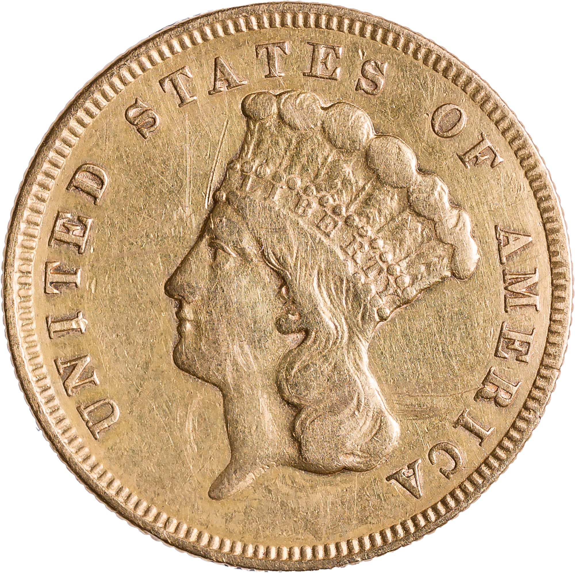 EF to AU Details 1874 $3 Gold
