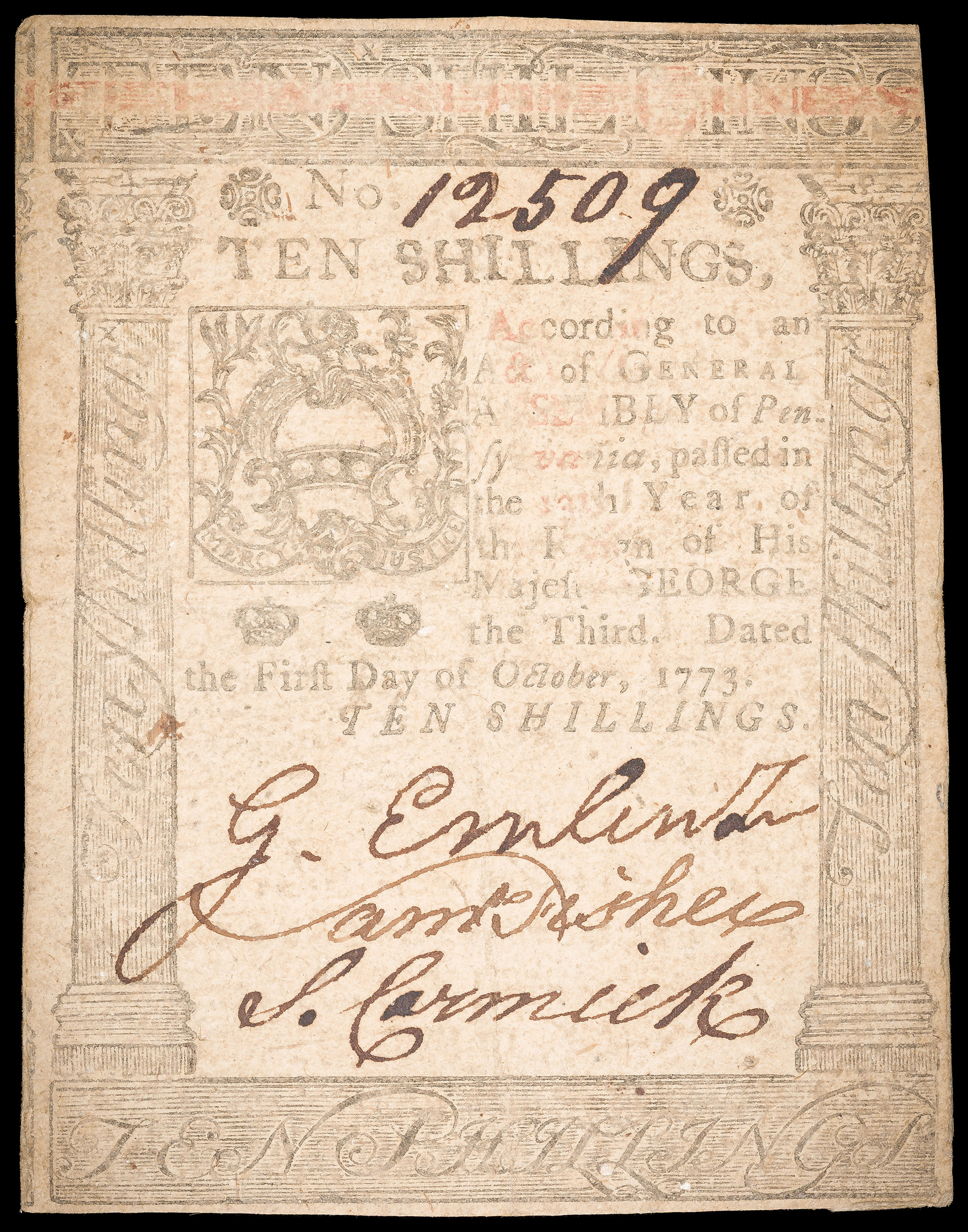VF 1773 Pennsylvania 10 Shils Colonial Currency