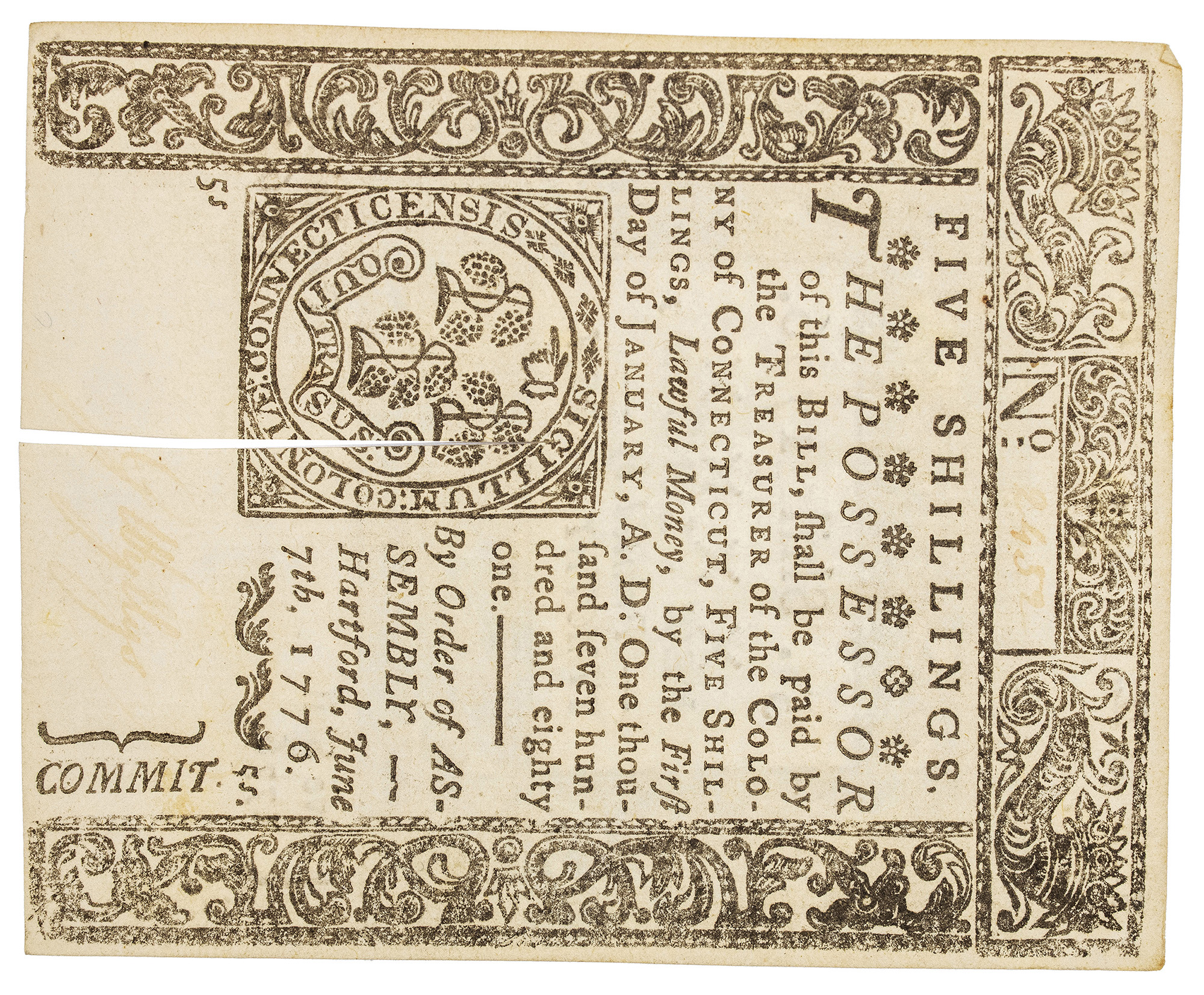 Connecticut. AU 1776 Five Shillings Colonial Note