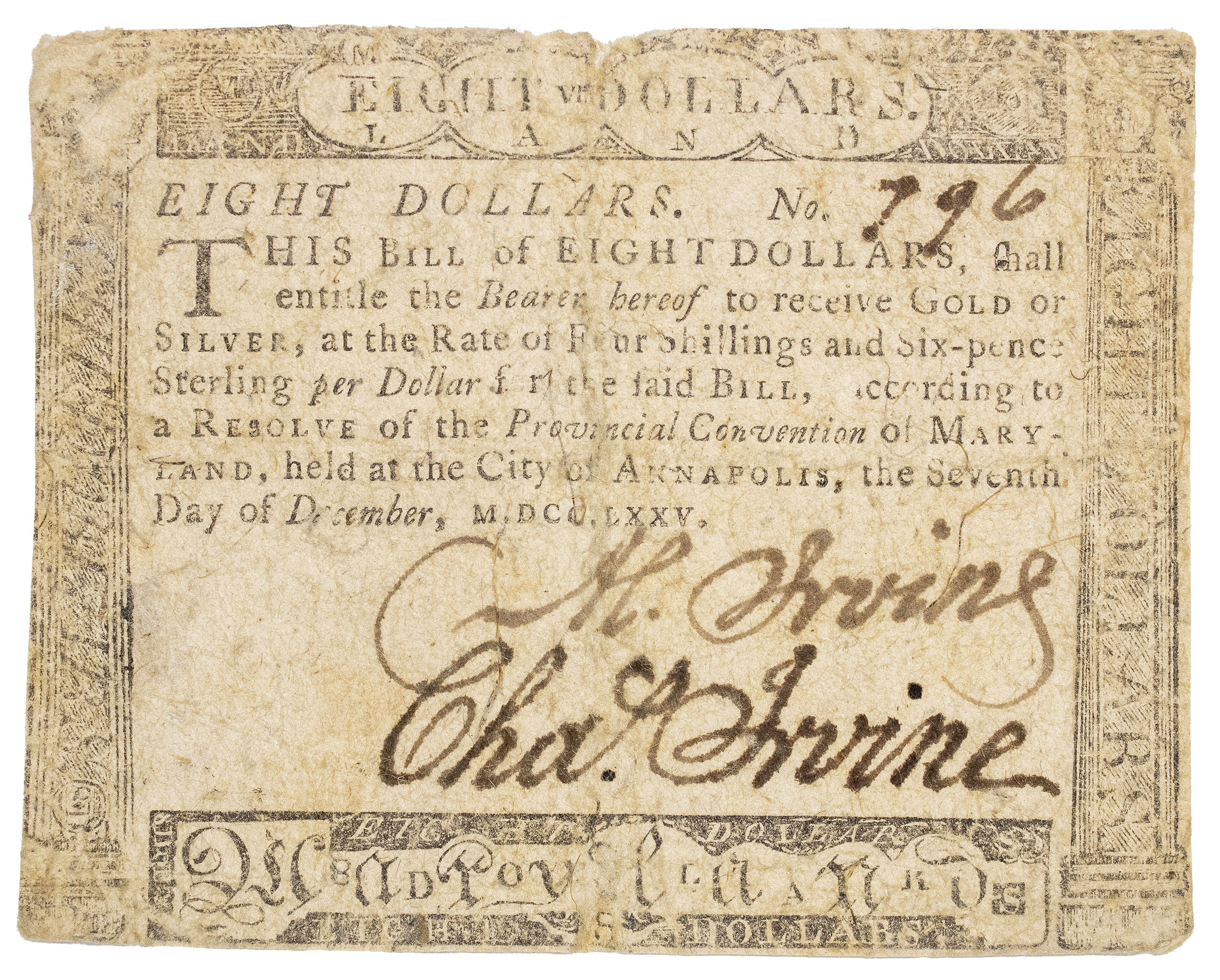 Maryland. Annapolis. December 7, 1775 $8 Note