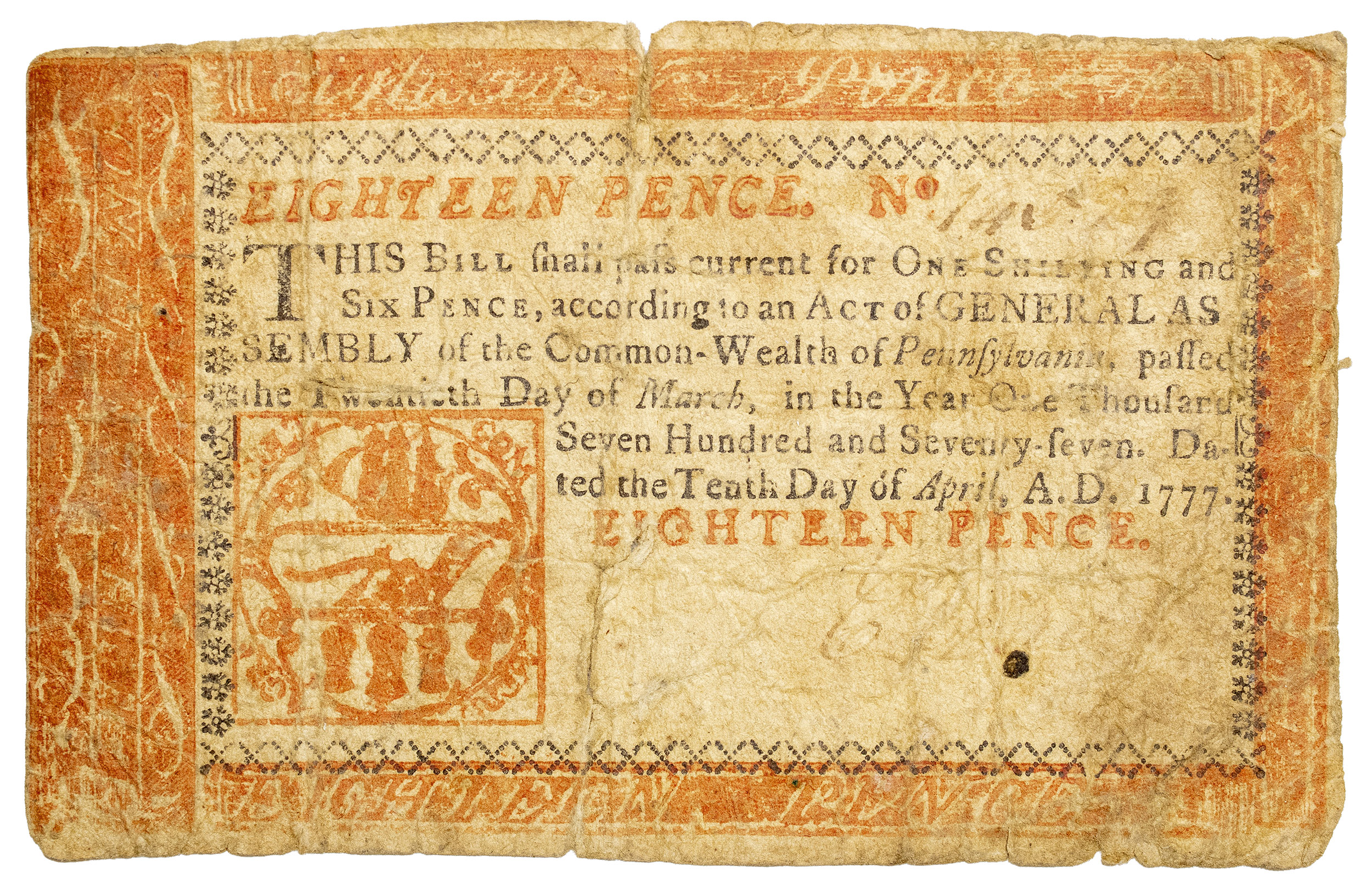 Pennsylvania. Commonwealth. 1777 18-Pence Note