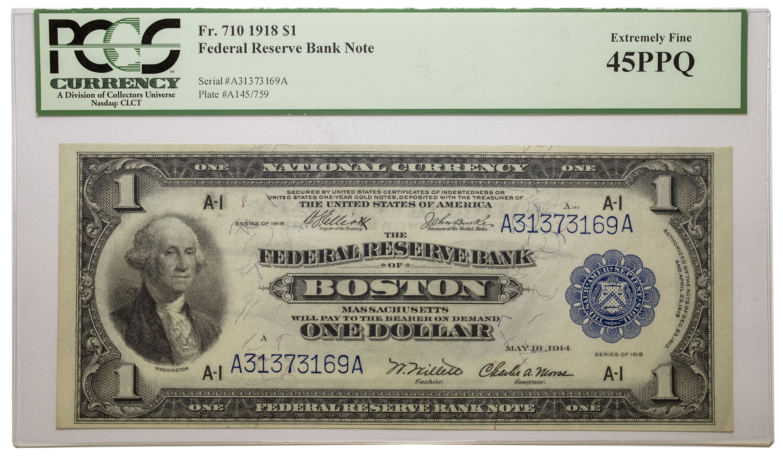PCGS EF-45 PPQ 1918 $1 FRB