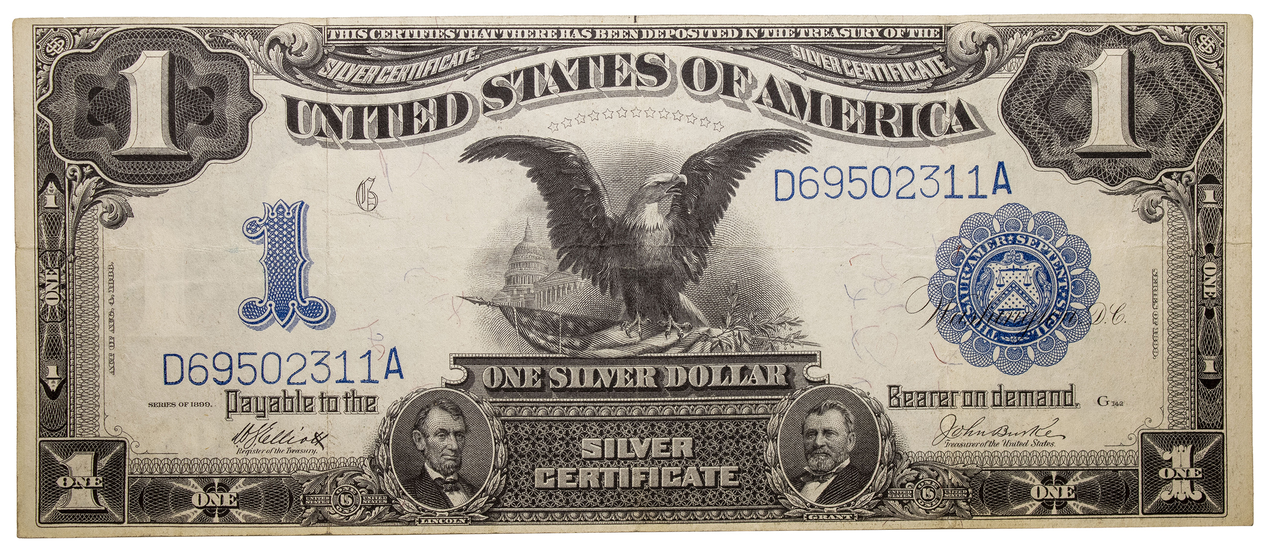 EF 1899 $1 Black Eagle Silver Certificate