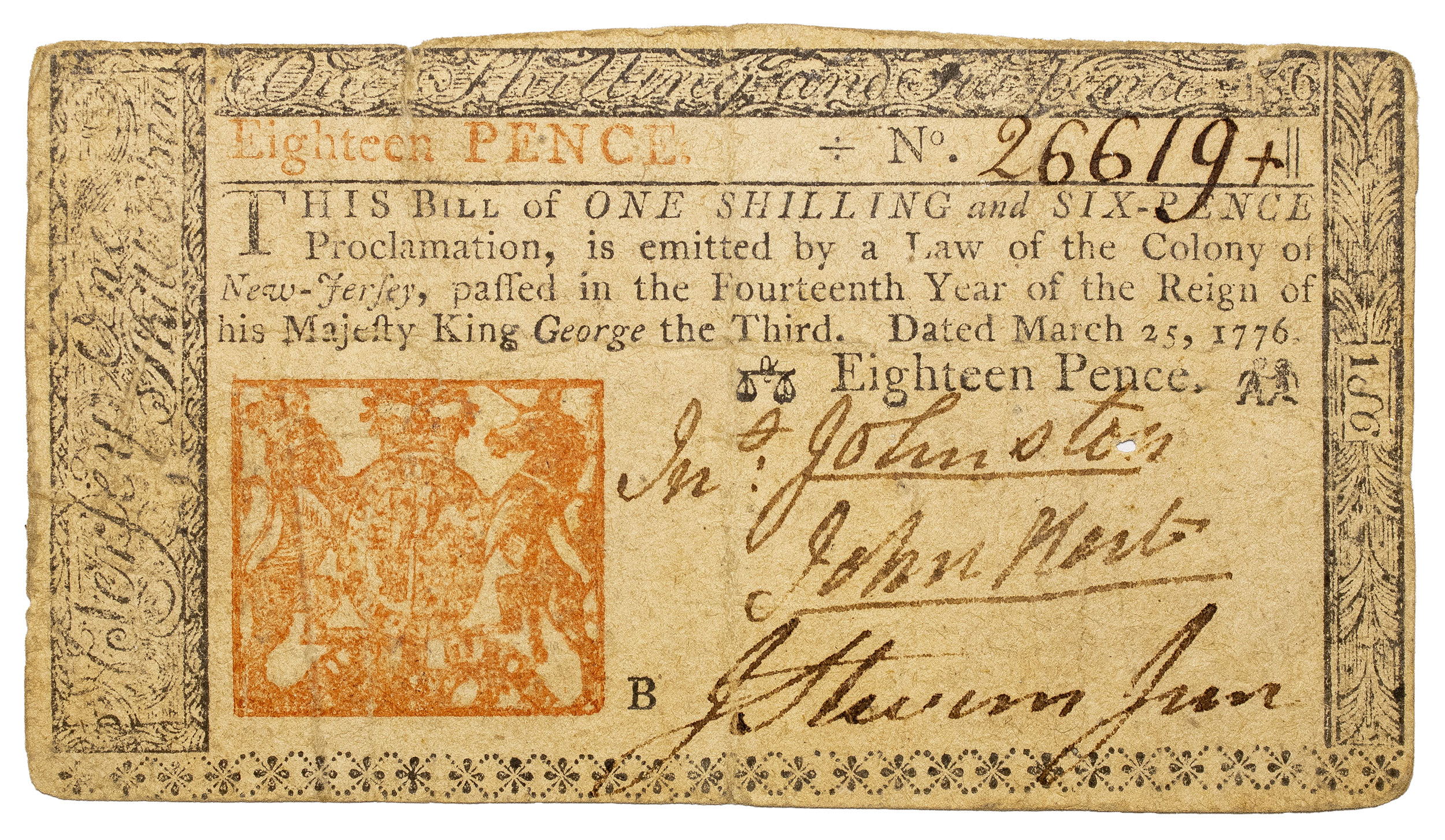 VF John Hart Signed NJ Colonial Note