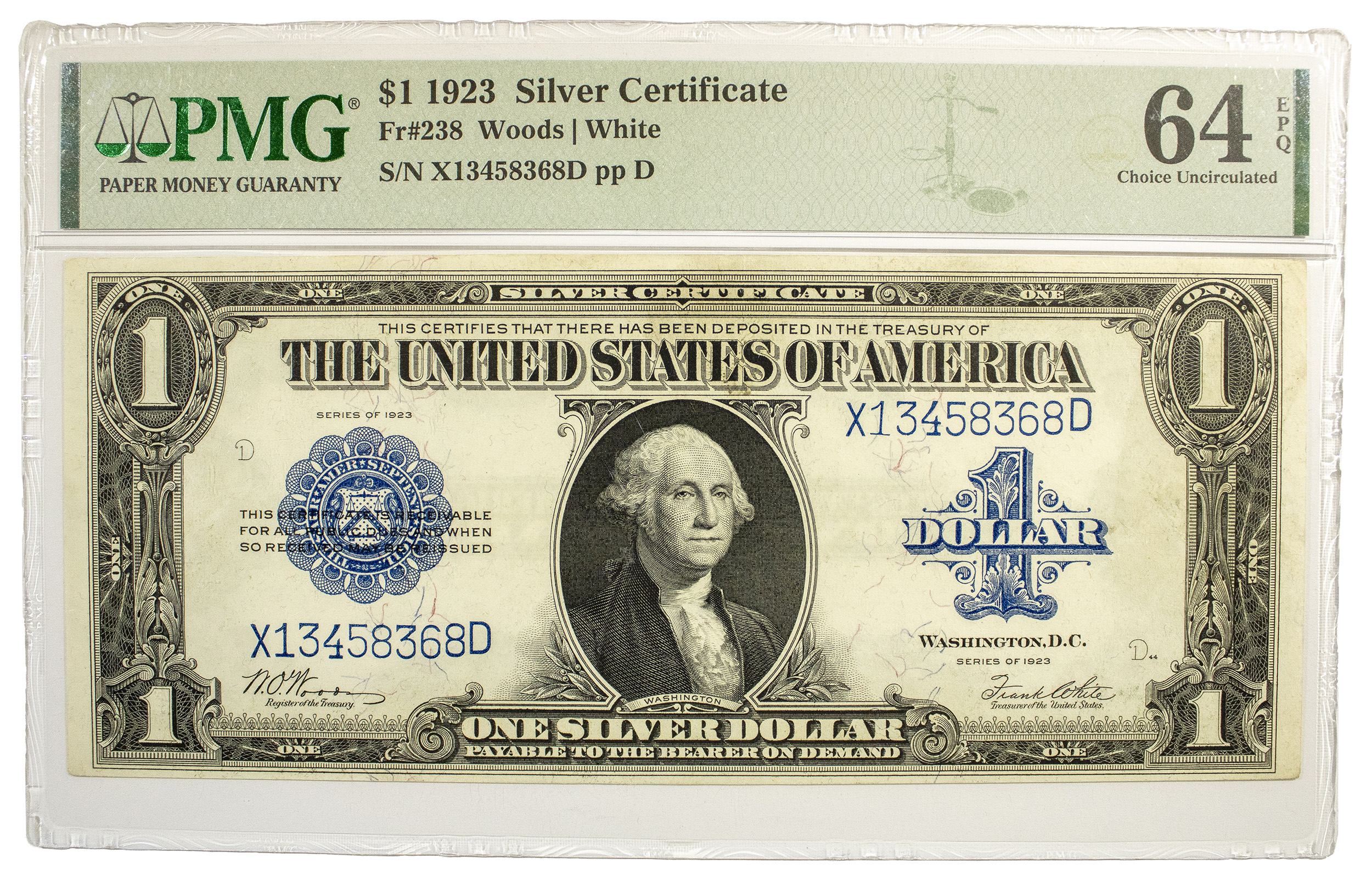 PMG Choice-64 EPQ 1923 $1 Horseblanket Note