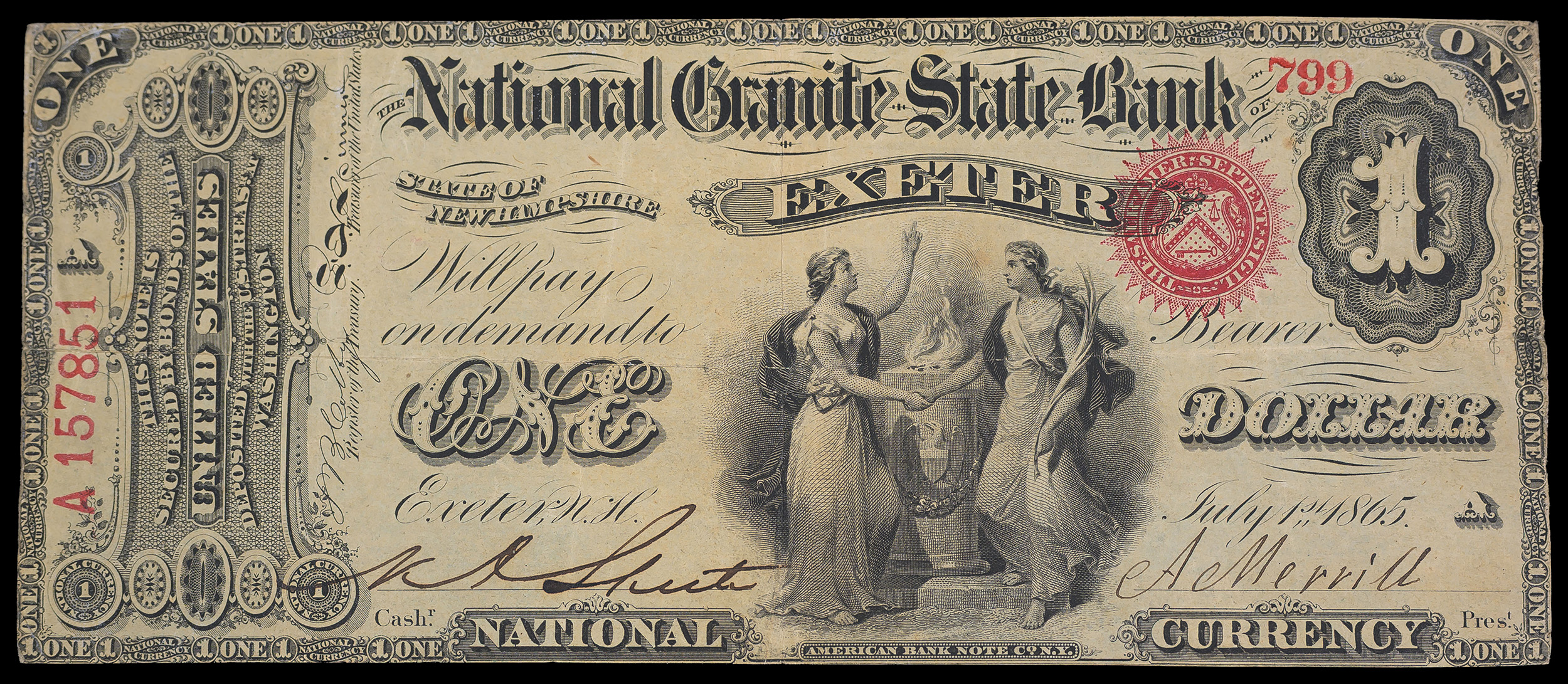 New Hampshire. Exeter. $1 National Currency