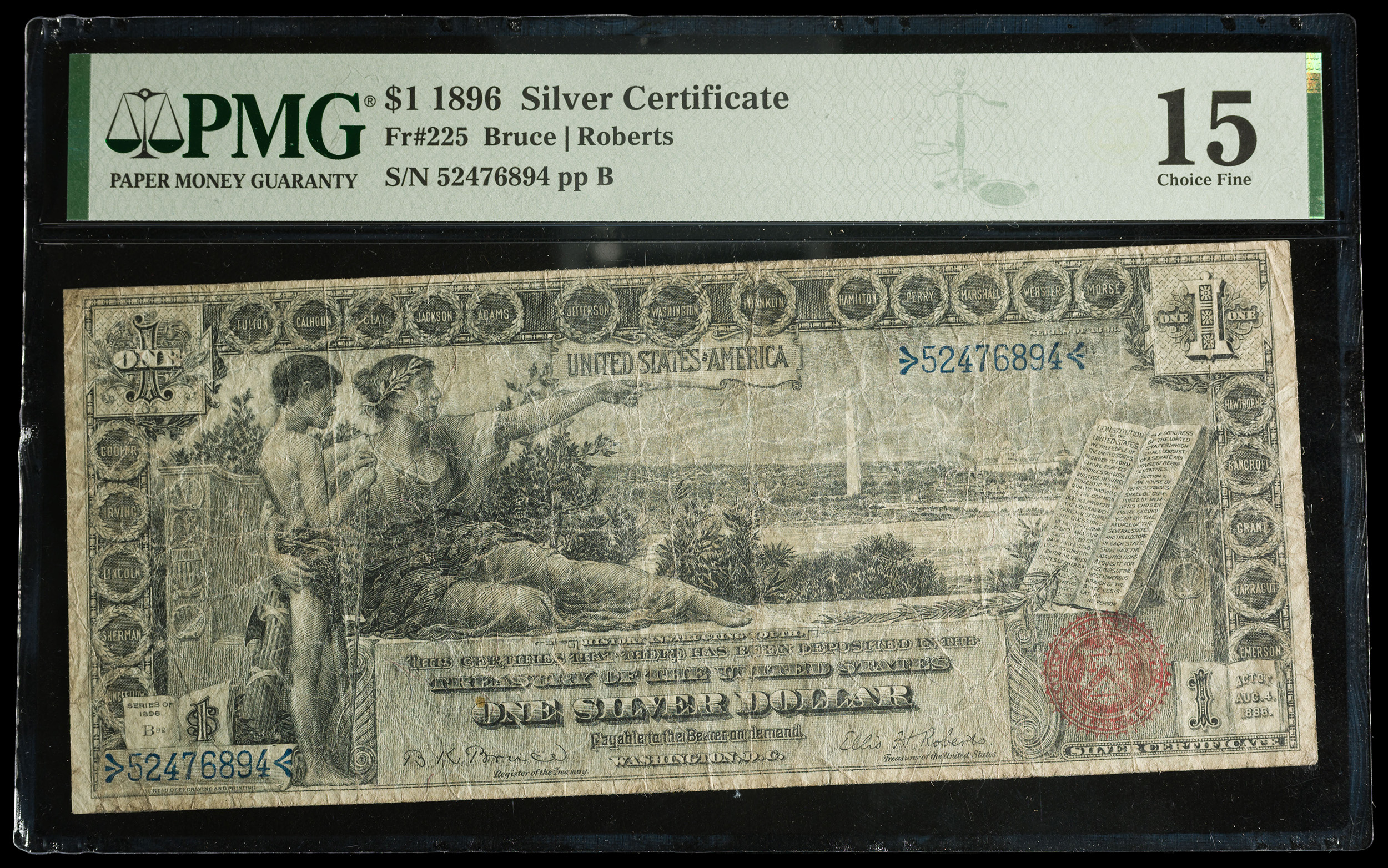 PMG Fine-15 Series 1896 $1 Educational Note