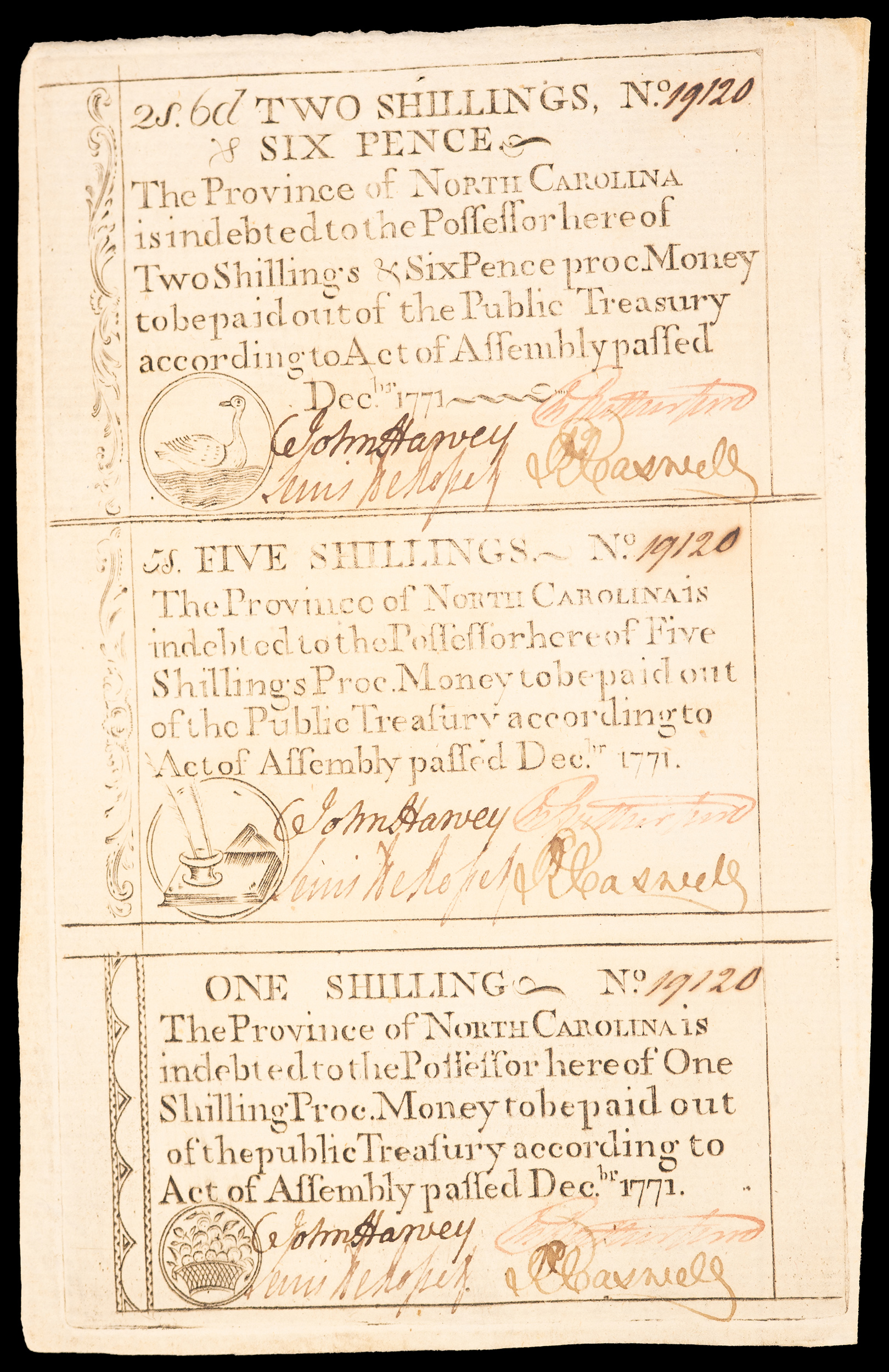 North Carolina. 1771 Three Denomination Sheet