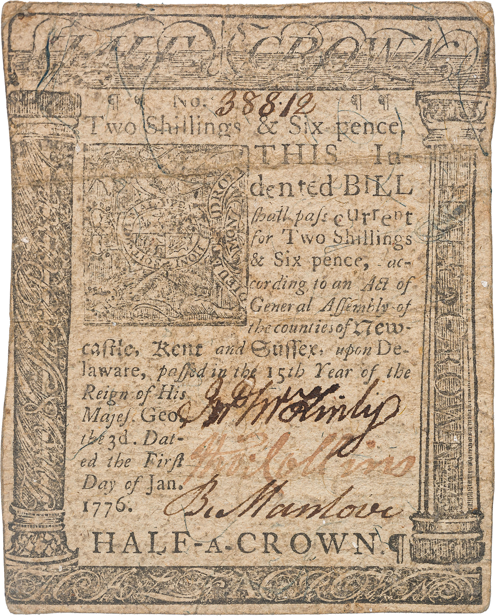 Delaware. VF+ 1776 Two Shillings Six Pence Note