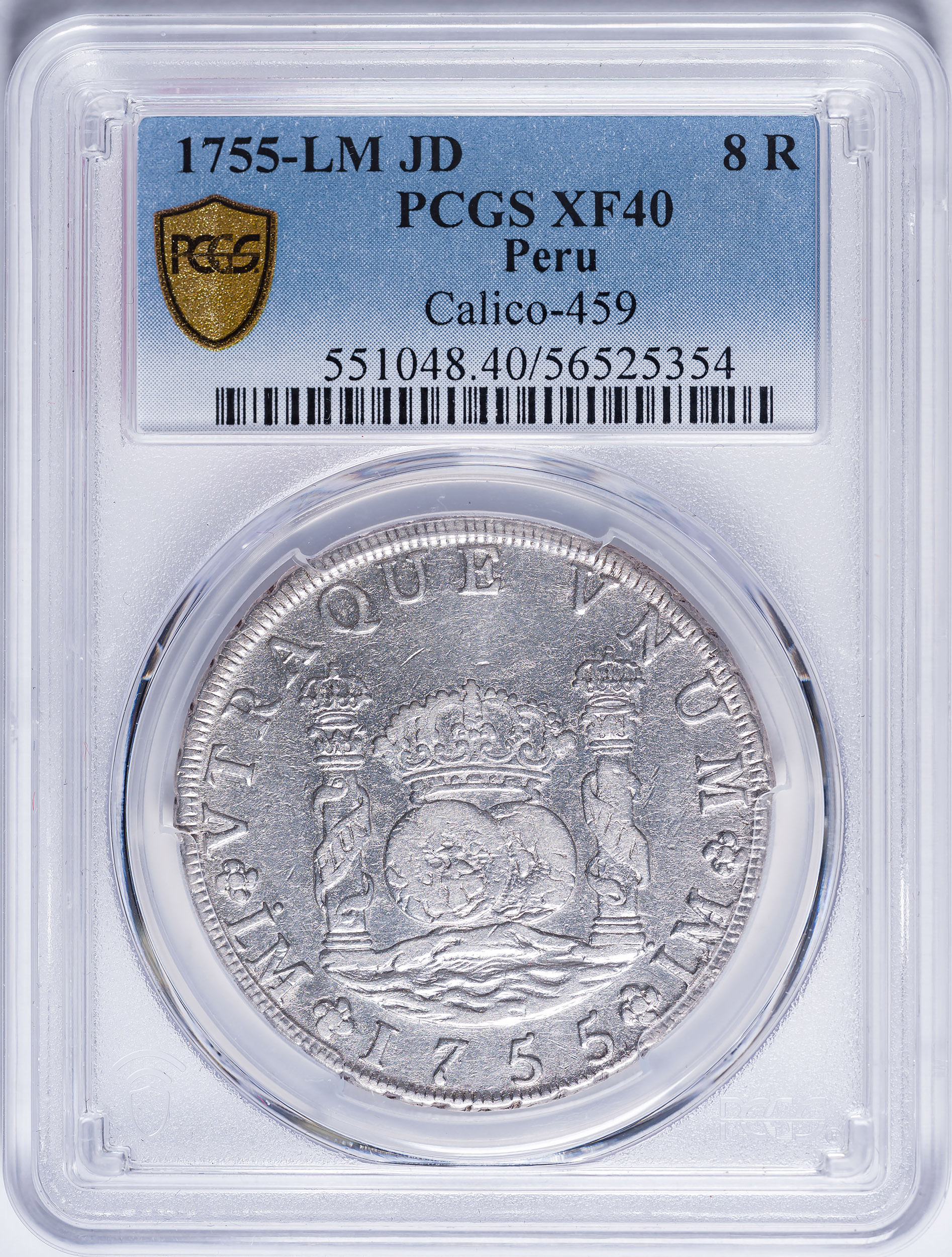Peru. PCGS EF-40 1755-JD Pillar 8 Reales