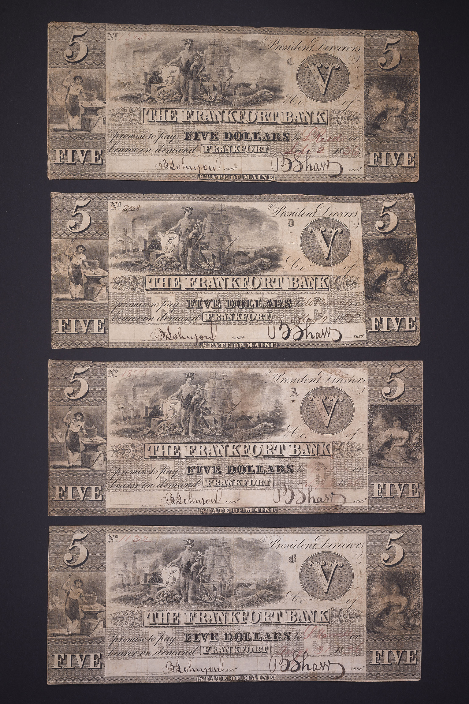 Maine. Frankfort. Frankfort Bank 4 Pieces $5 Notes