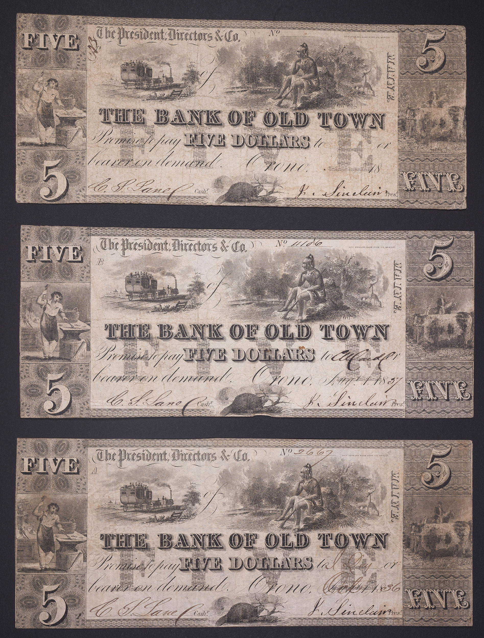 Maine. Orono. Bank Of Old Town $5 Trio