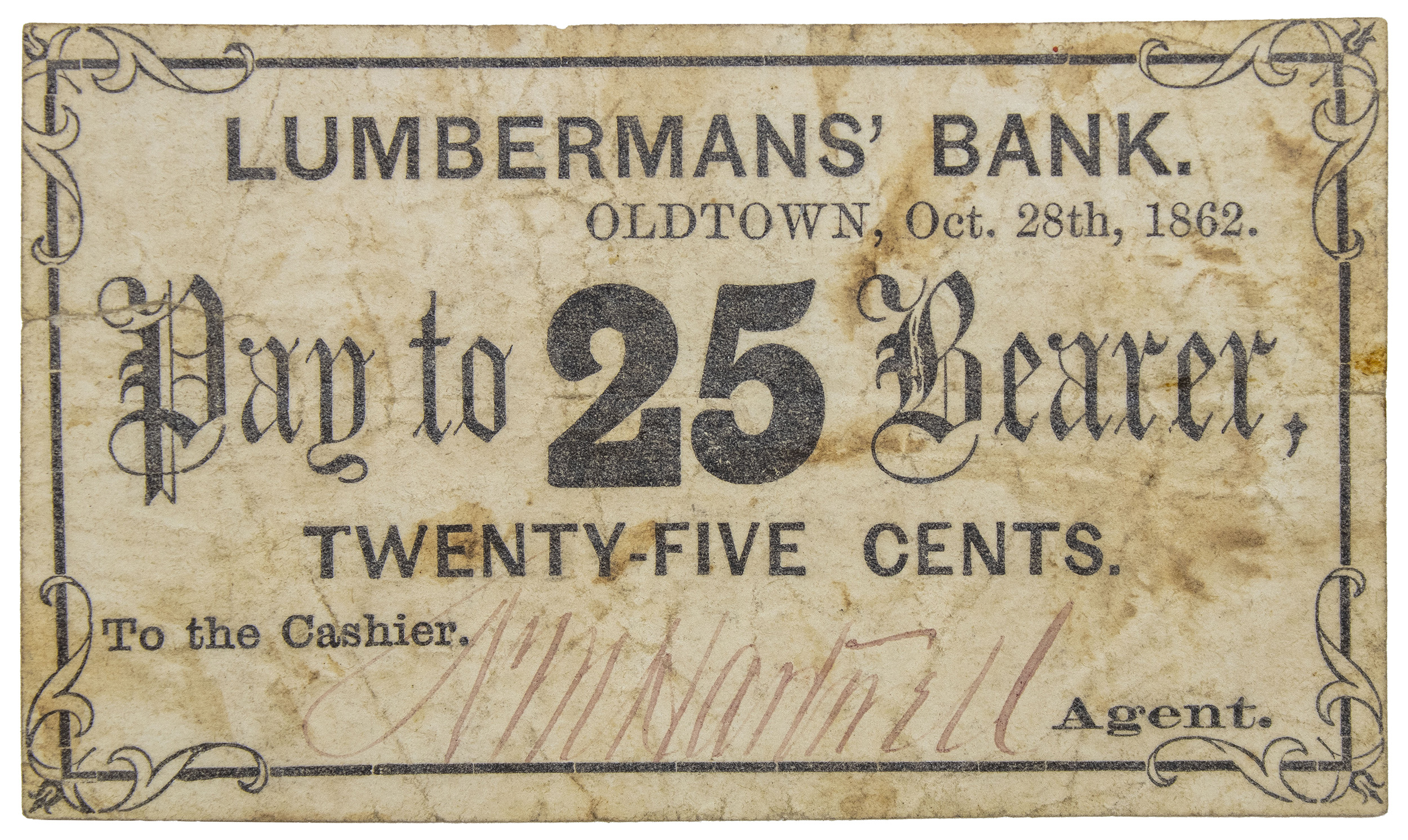 Maine. Oldtown. Lubermans' Bank 25 Cent Note
