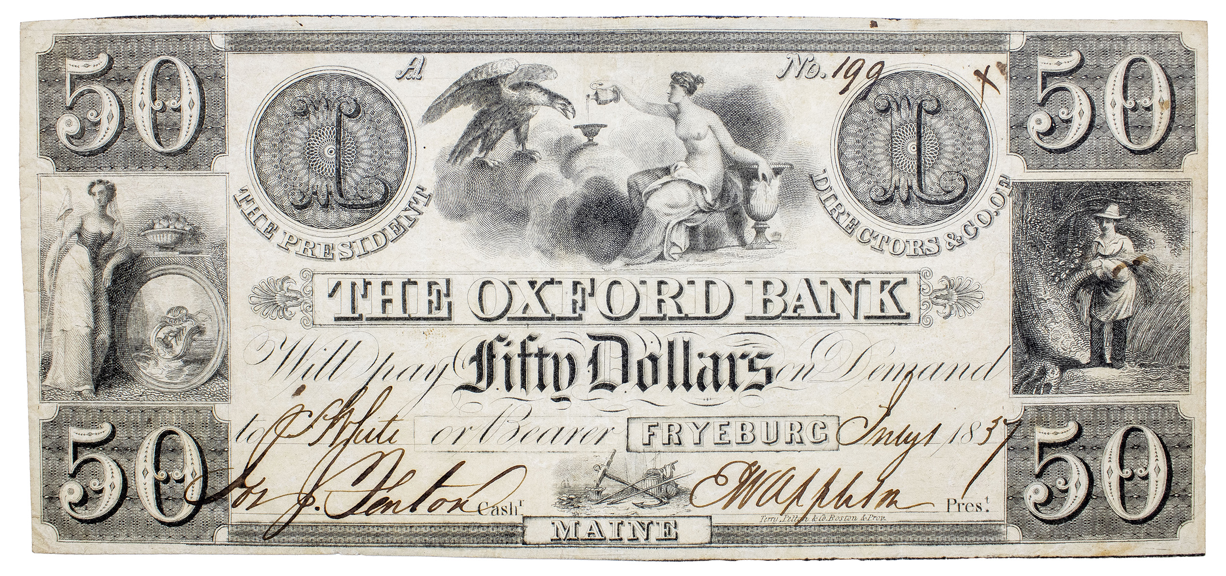 Maine. Fryeburg. Scarce The Oxford Bank $50
