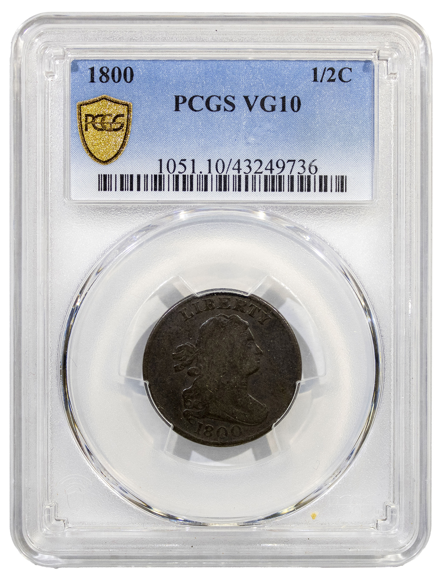 PCGS VG-10 1800 Half Cent