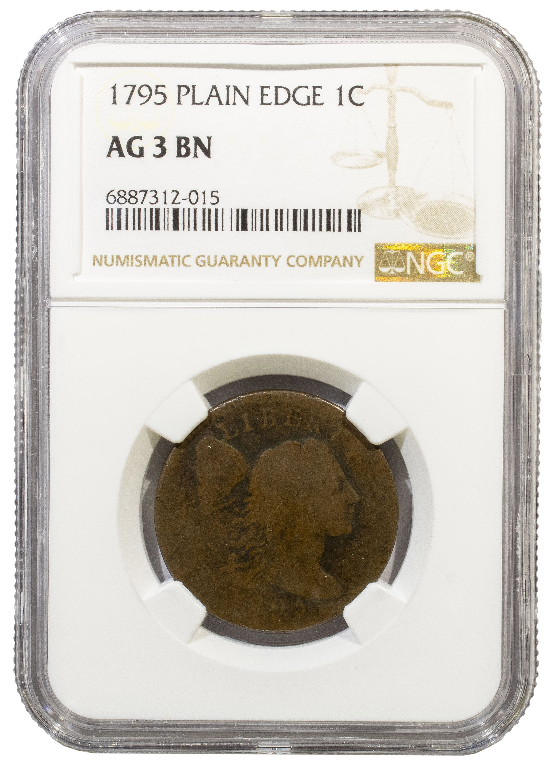 NGC AG-3 1795 Plain Edge Cent