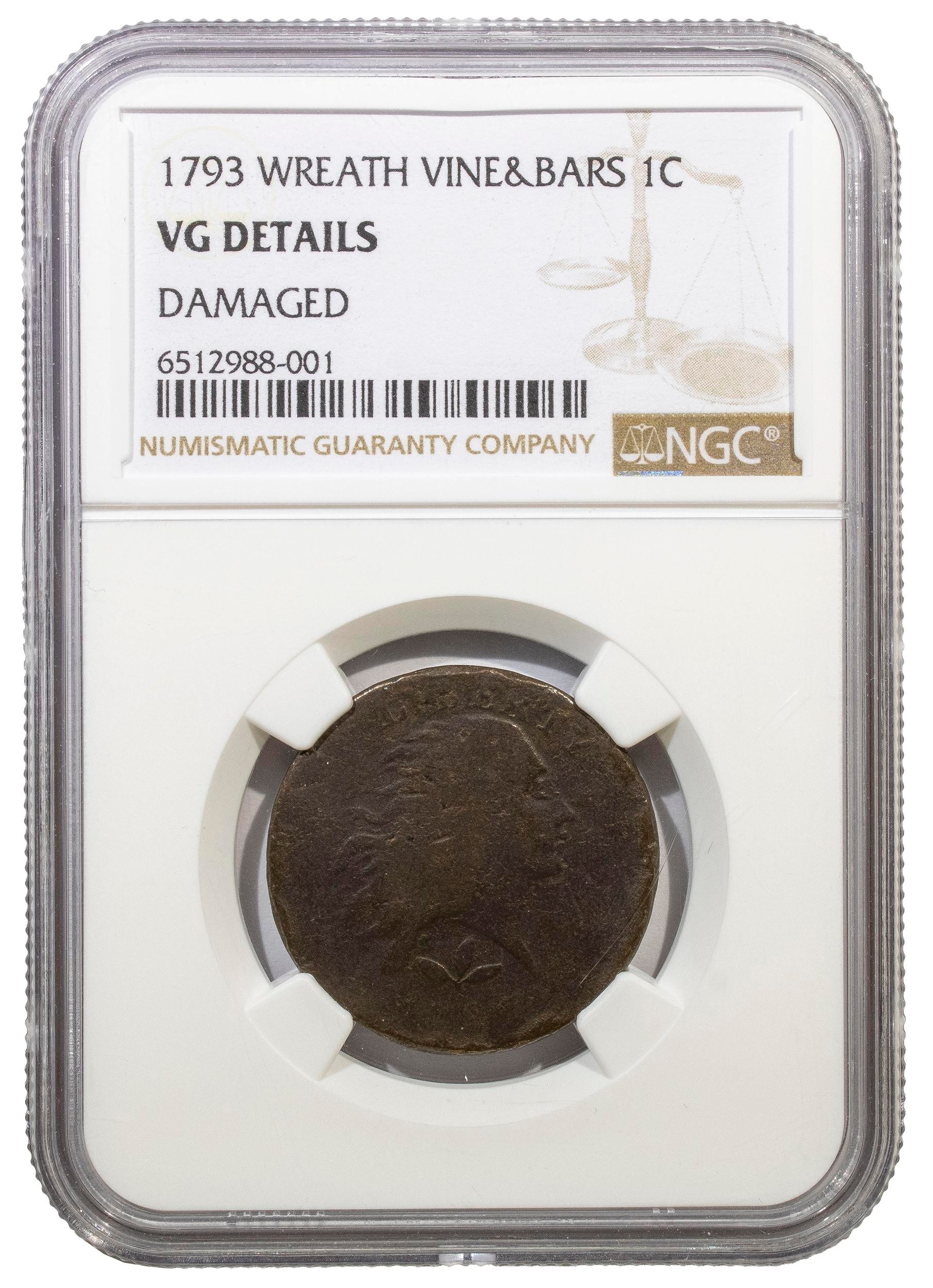 NGC VG Details 1793 Wreath Cent