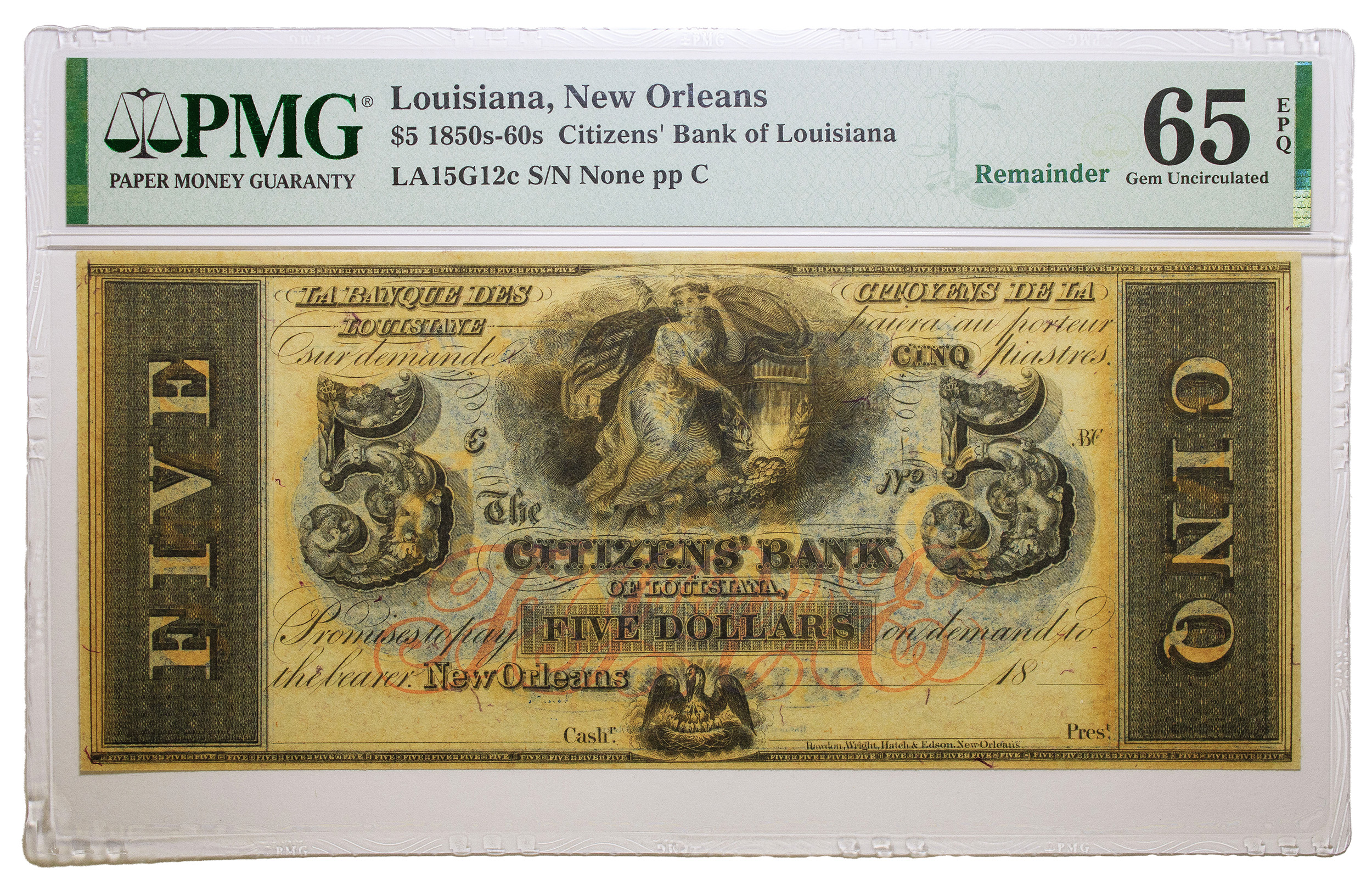 Louisiana. New Orleans. PMG UNC-65 $5 Remainder