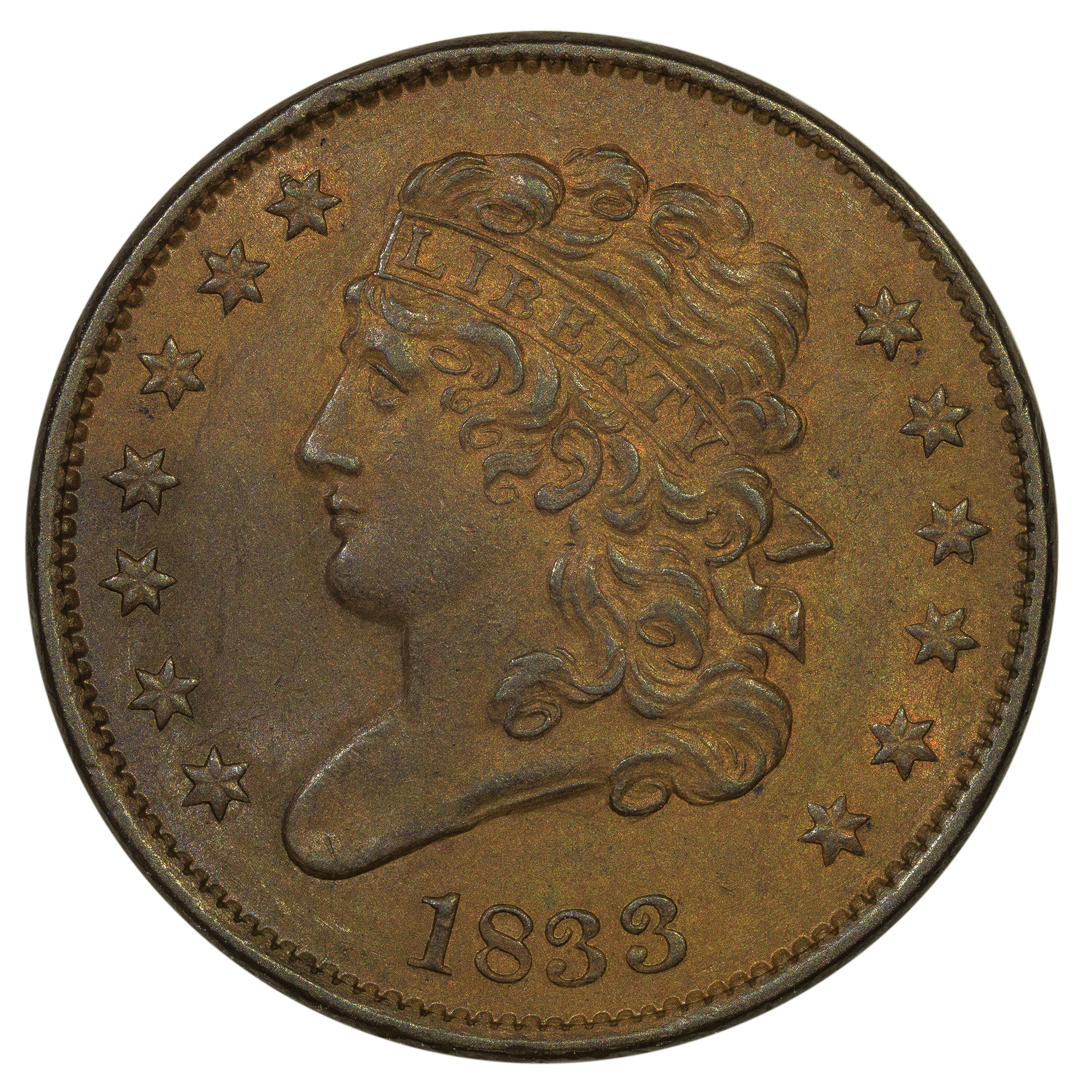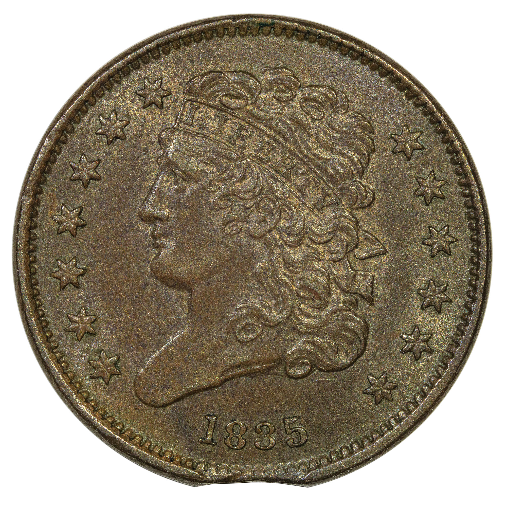 AU-58 1835 Half Cent Error