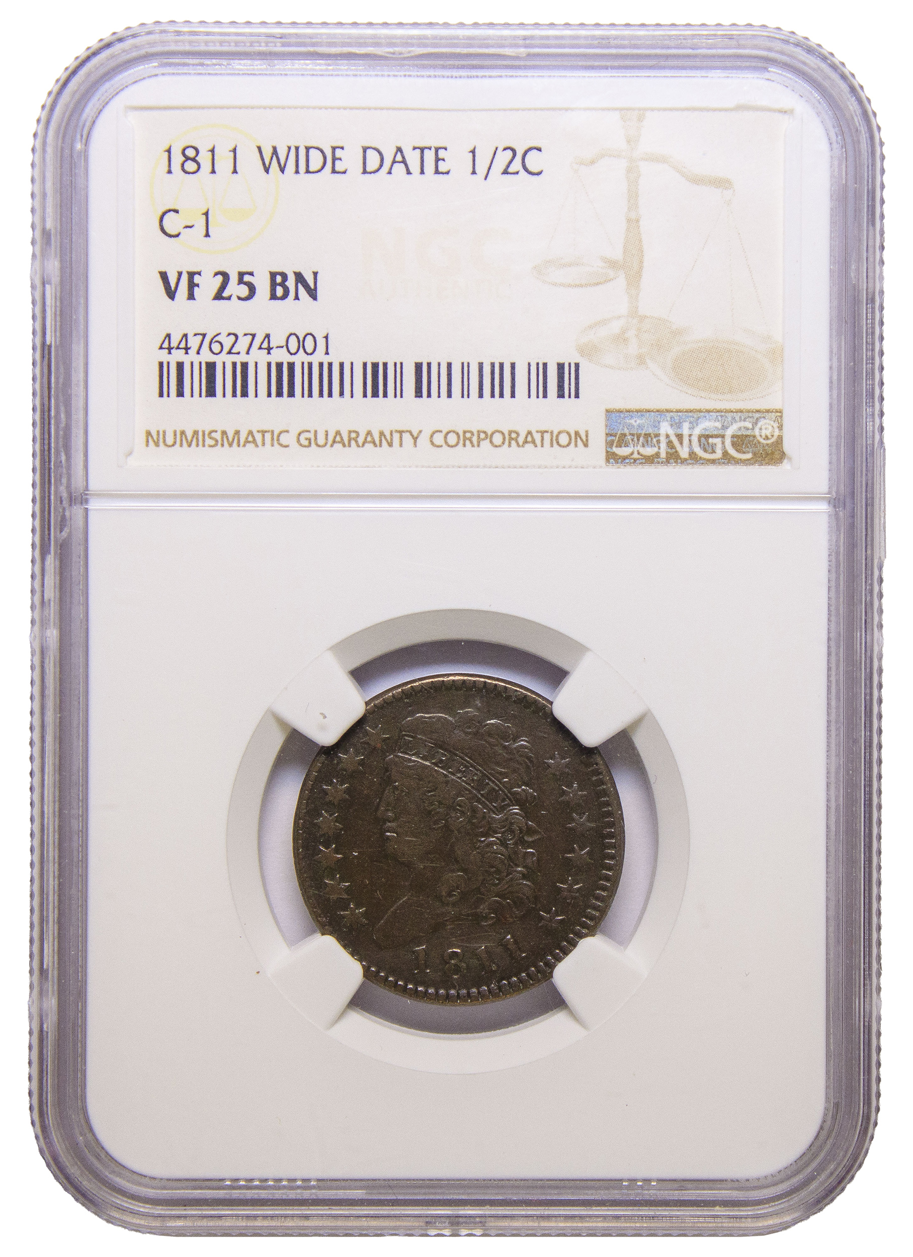 NGC VF-25 1811 Wide Date Half Cent Rarity