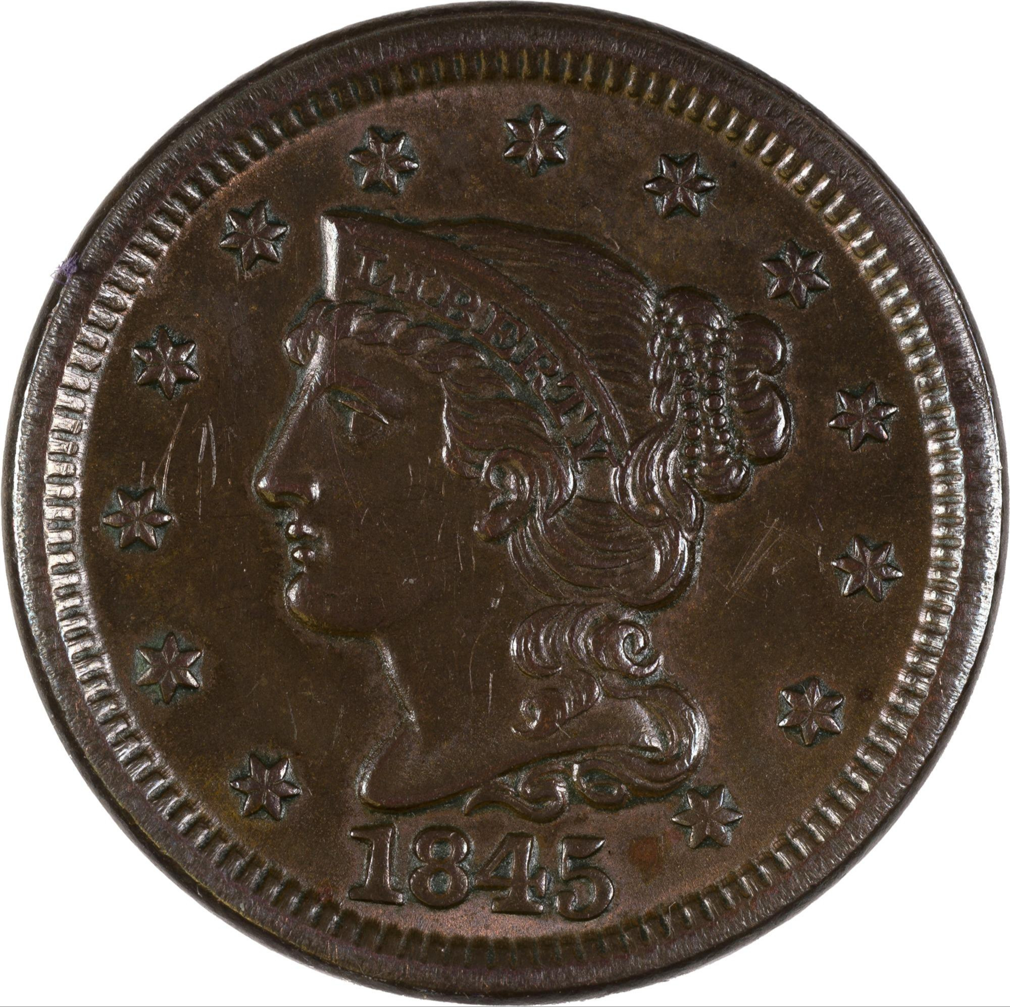 UNC Details 1845 Large Cent