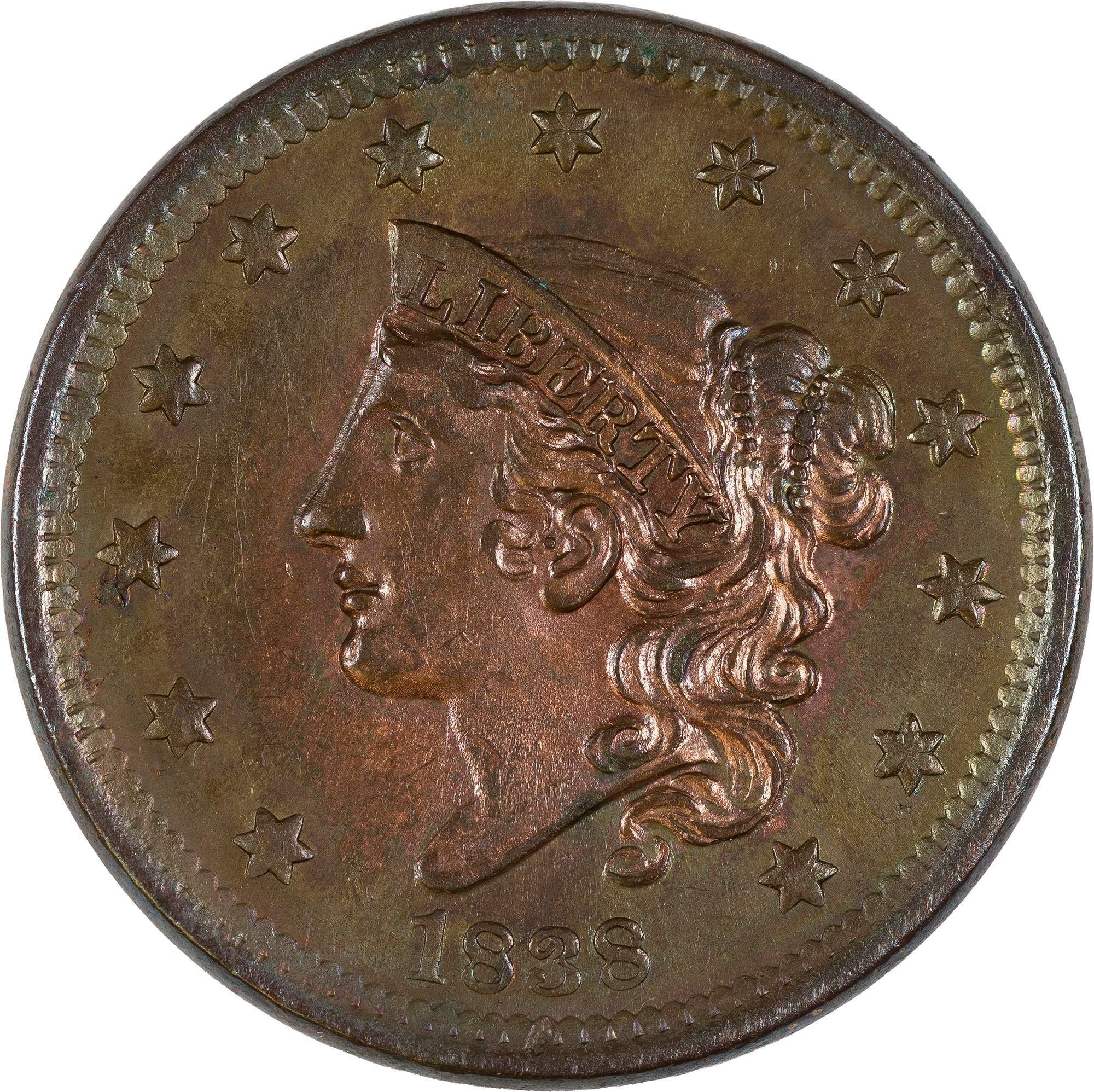 UNC Details 1838 Large Cent