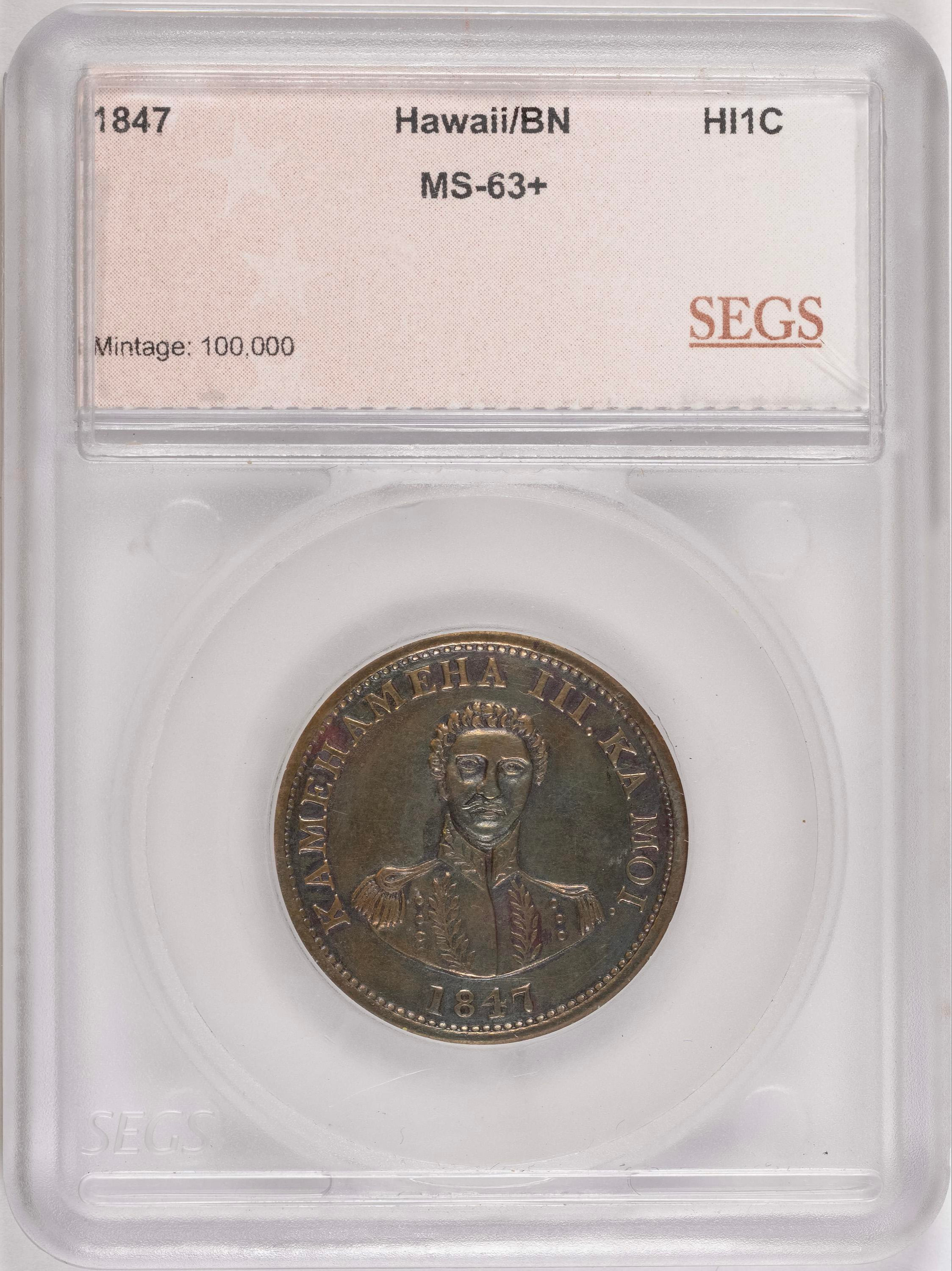 SEGS Certified 1847 Hawaiian Cent