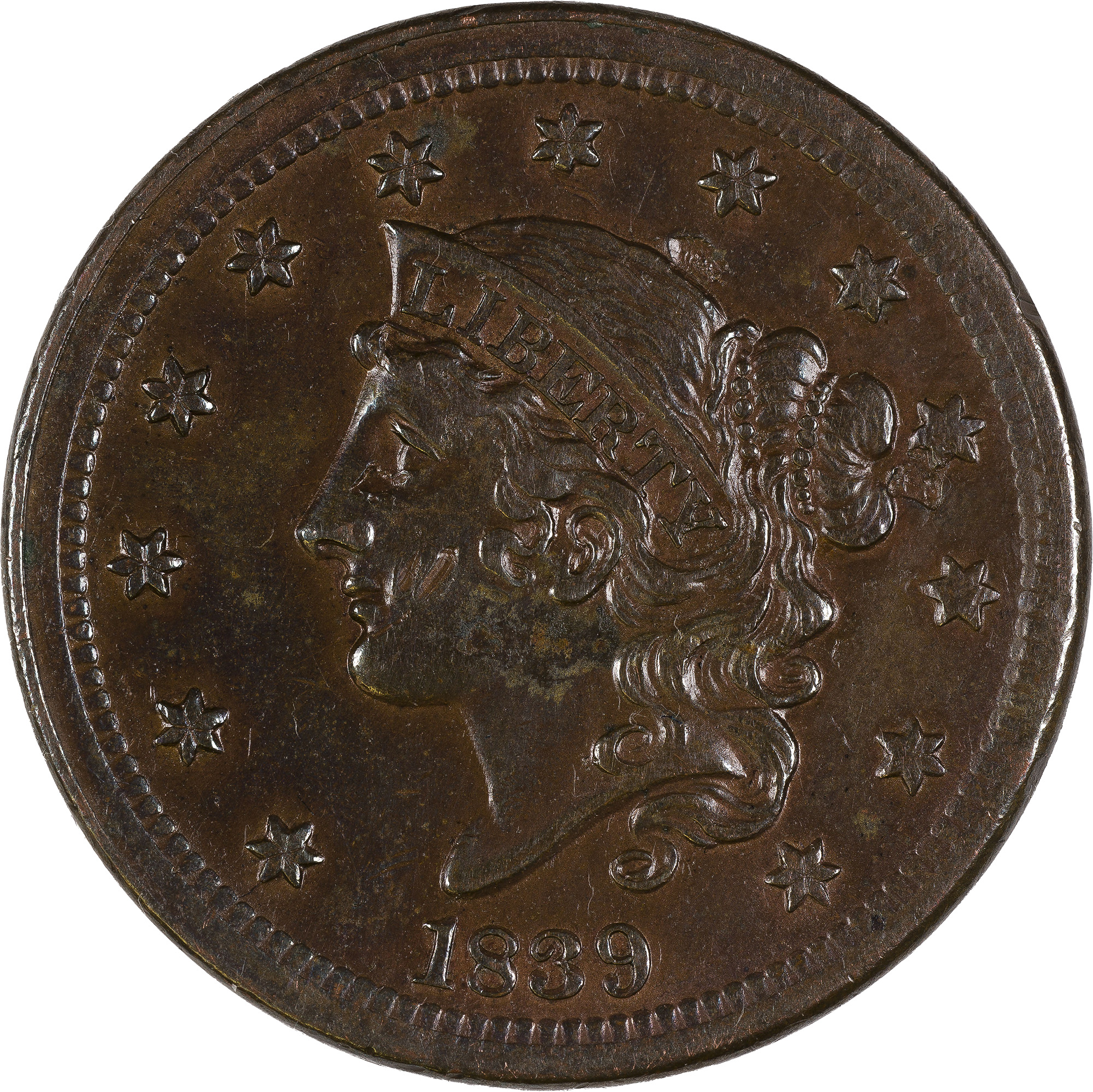 AU-58 Details 1839 Silly Head Large Cent