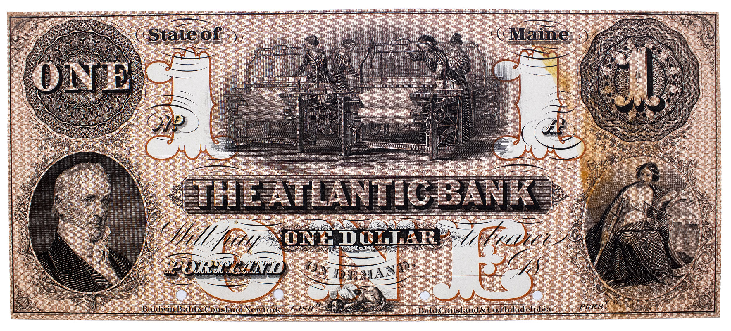 Maine. Portland. Rare The Atlantic Bank Proof $1