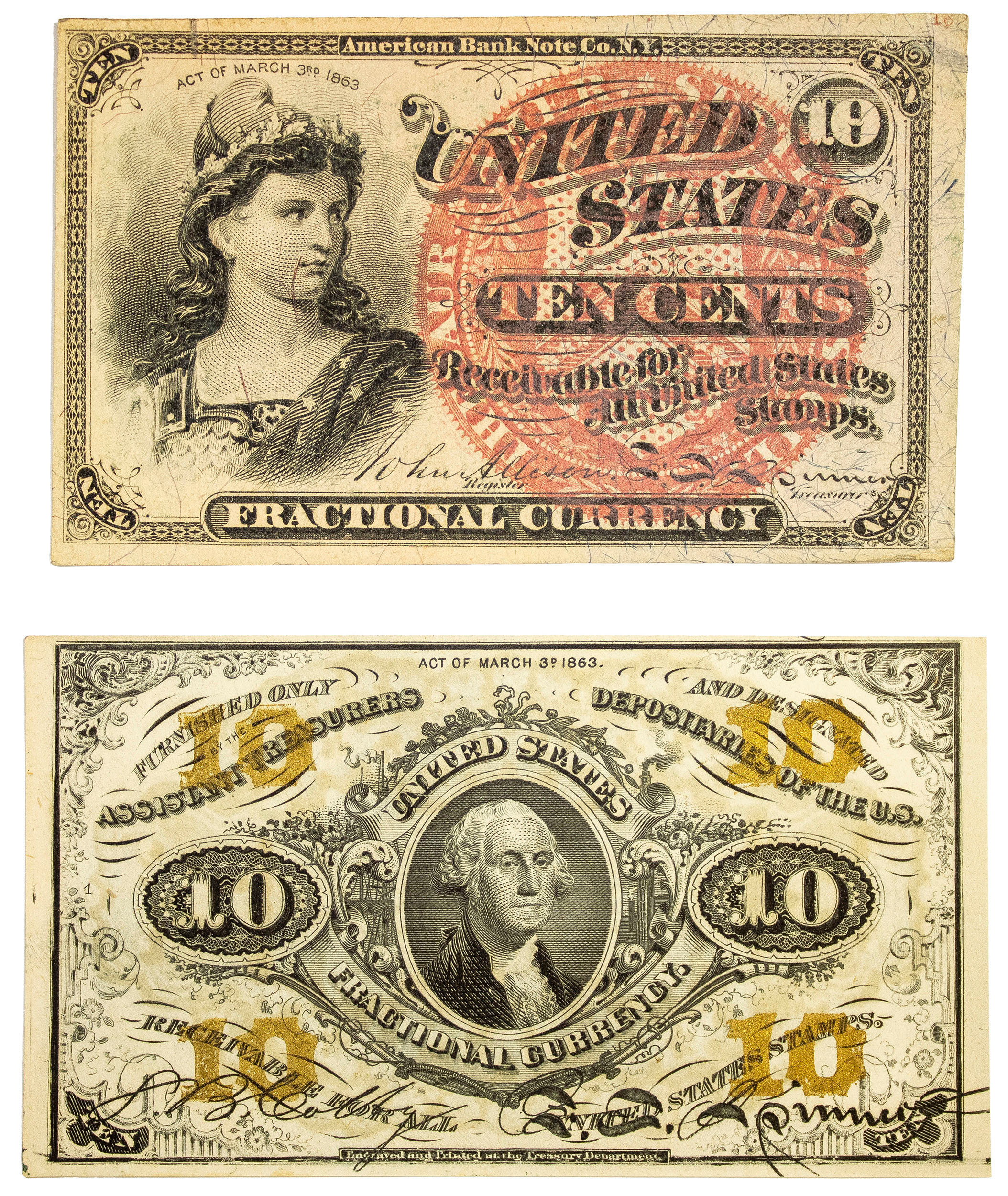 Fractional Currency. Pair of 10-Cent Types