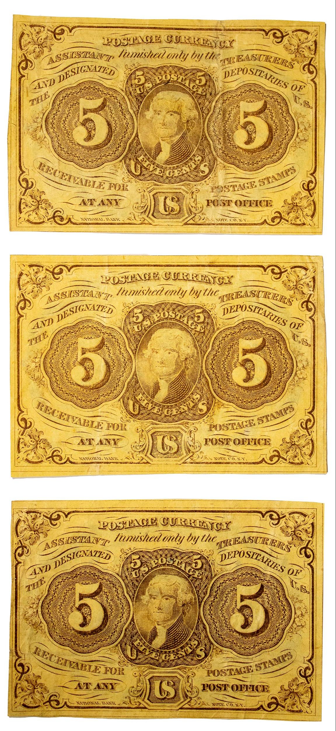 Postage Currency. EF Trio of Five-Cents Notes