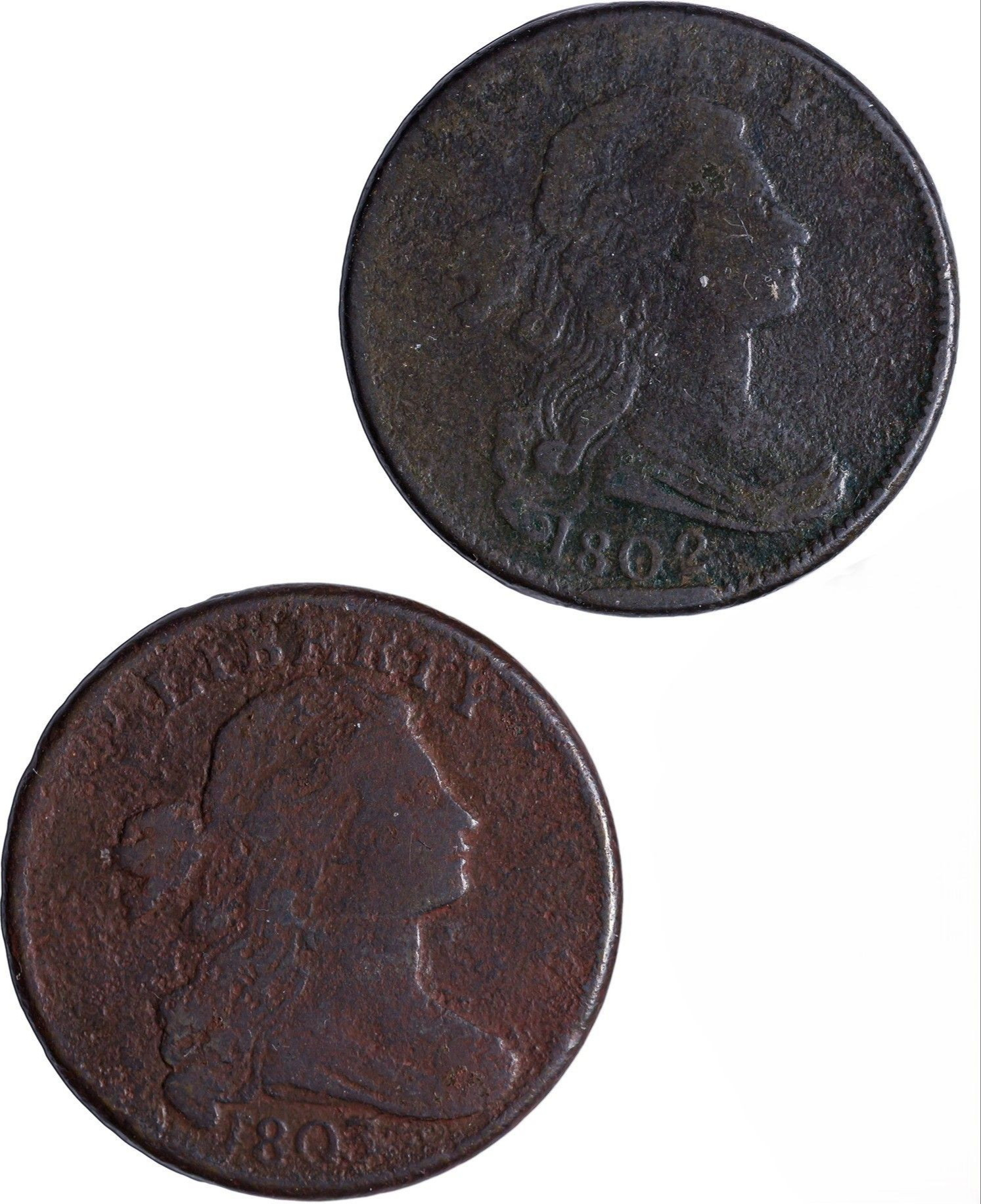 Pair of Fine-12 Details Draped Bust Large Cents