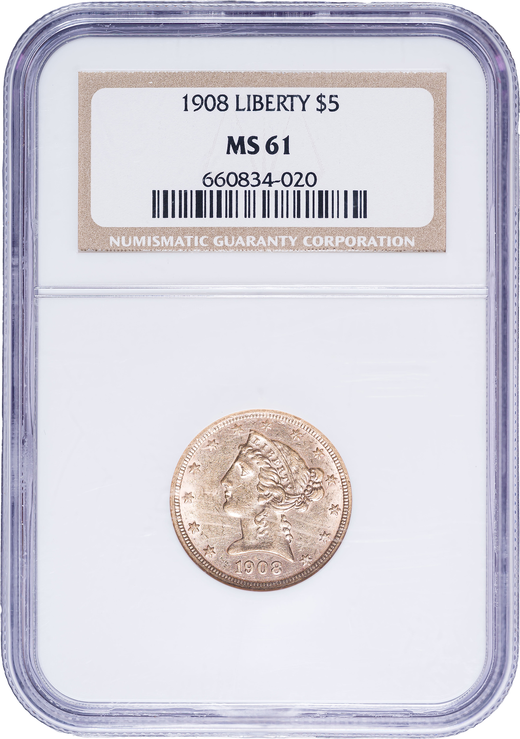 NGC MS-61 1908 Gold $5 Liberty