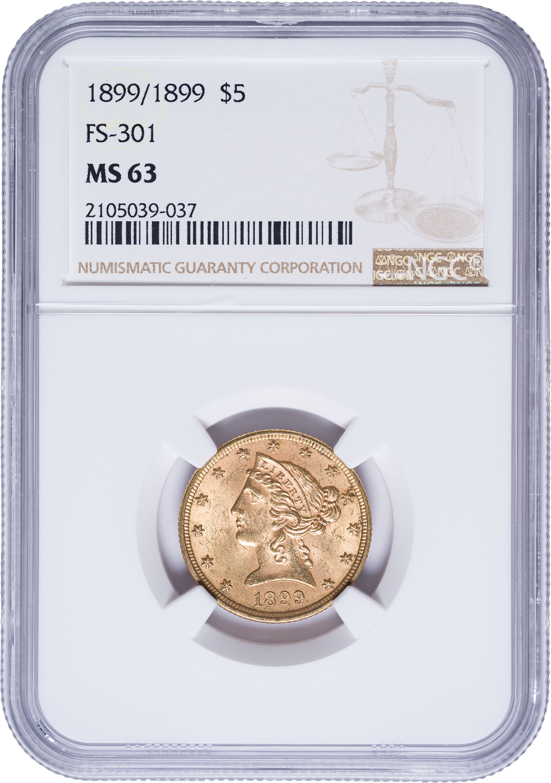 NGC MS-63 1899/1899 Gold $5 Liberty