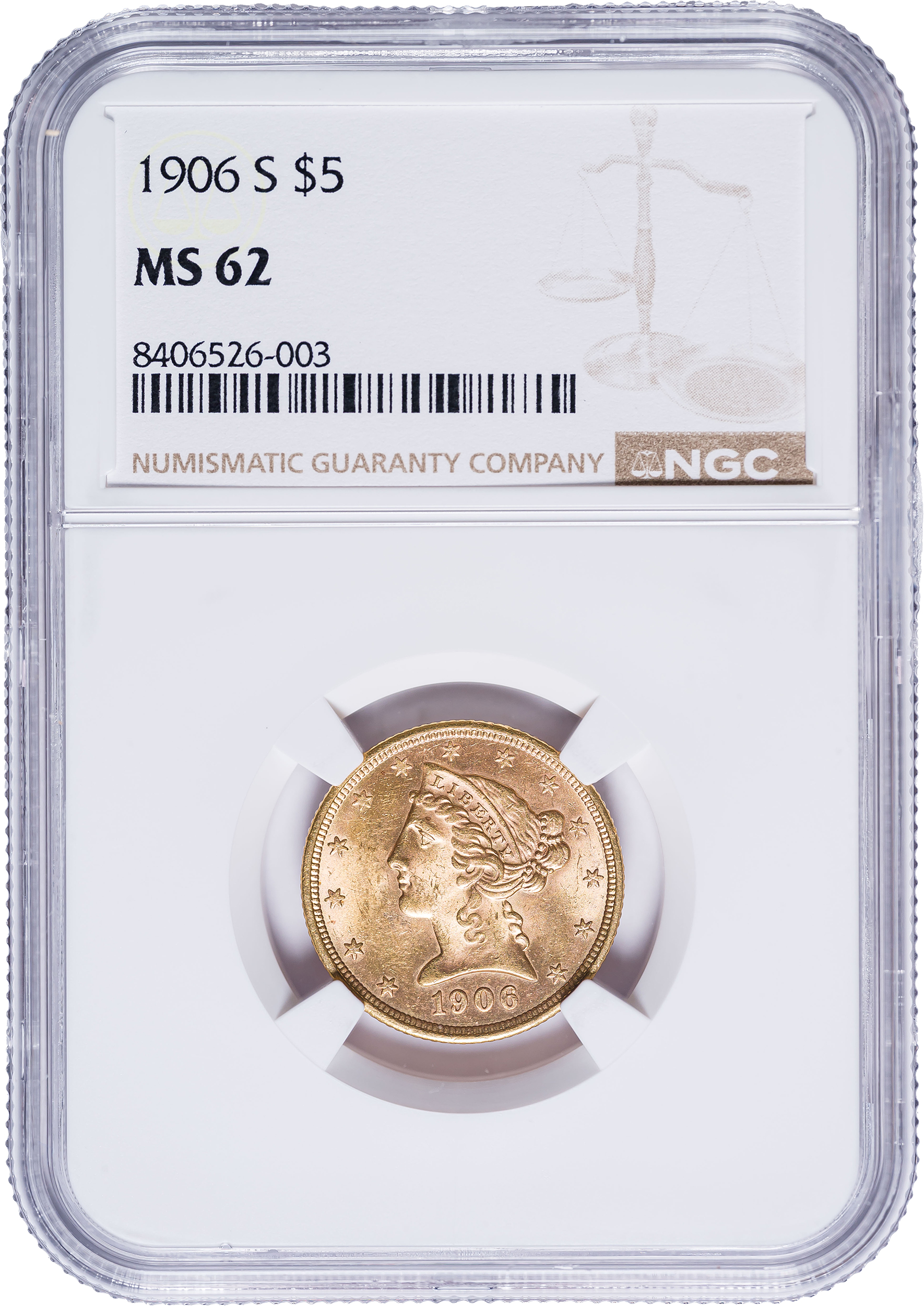NGC MS-62 1906-S Gold $5 Liberty