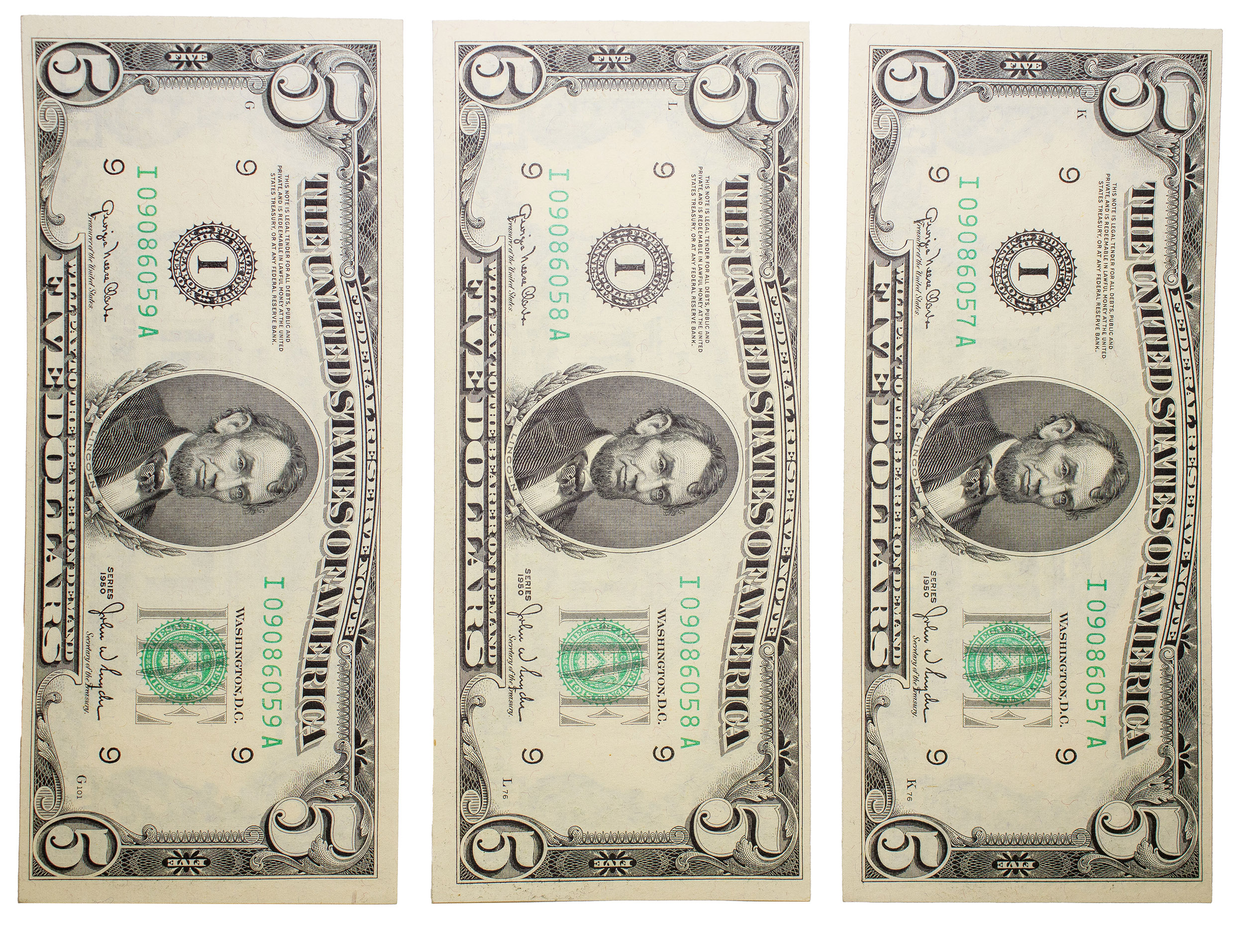 Crisp New Change Over Trio Series 1950 $5 Notes