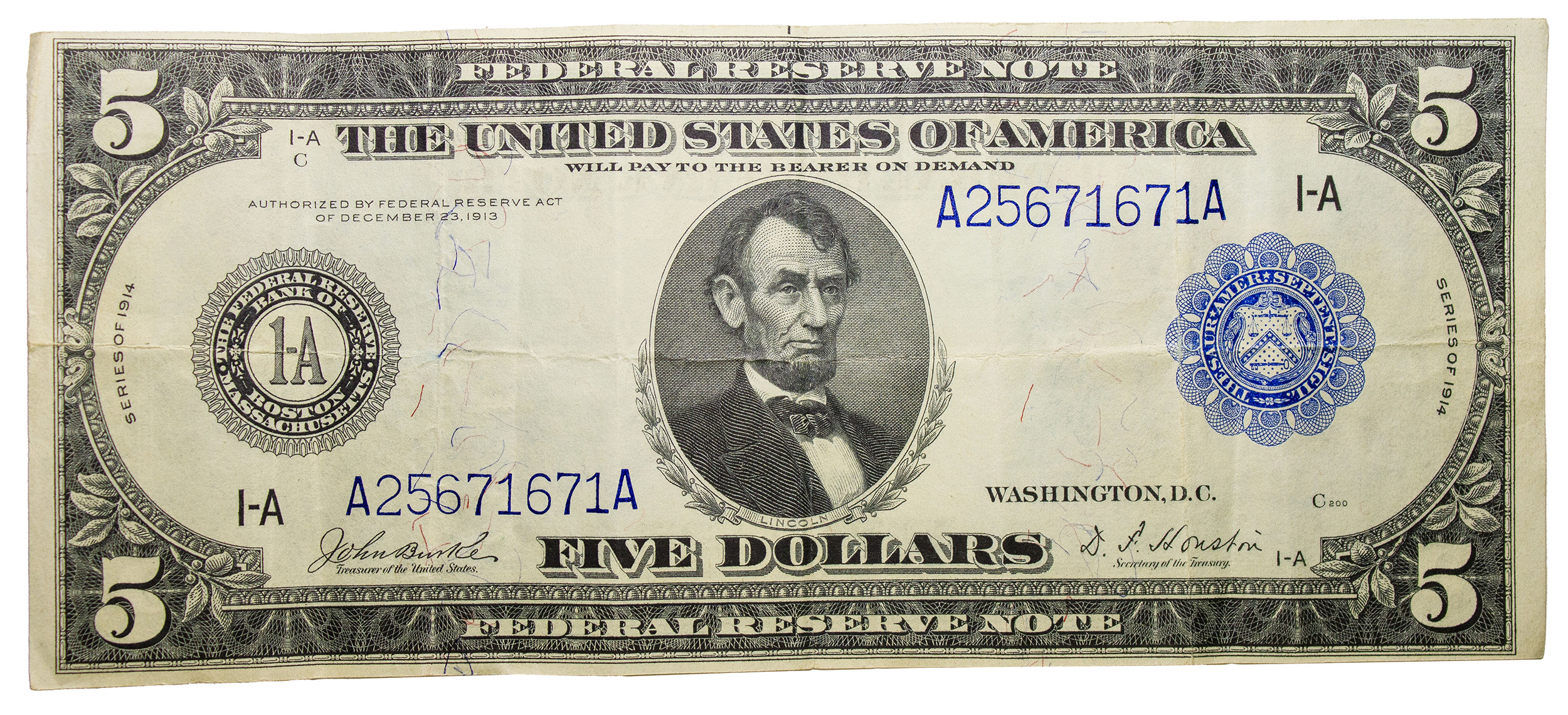 VF+ Series 1914 $5 Federal Reserve Note