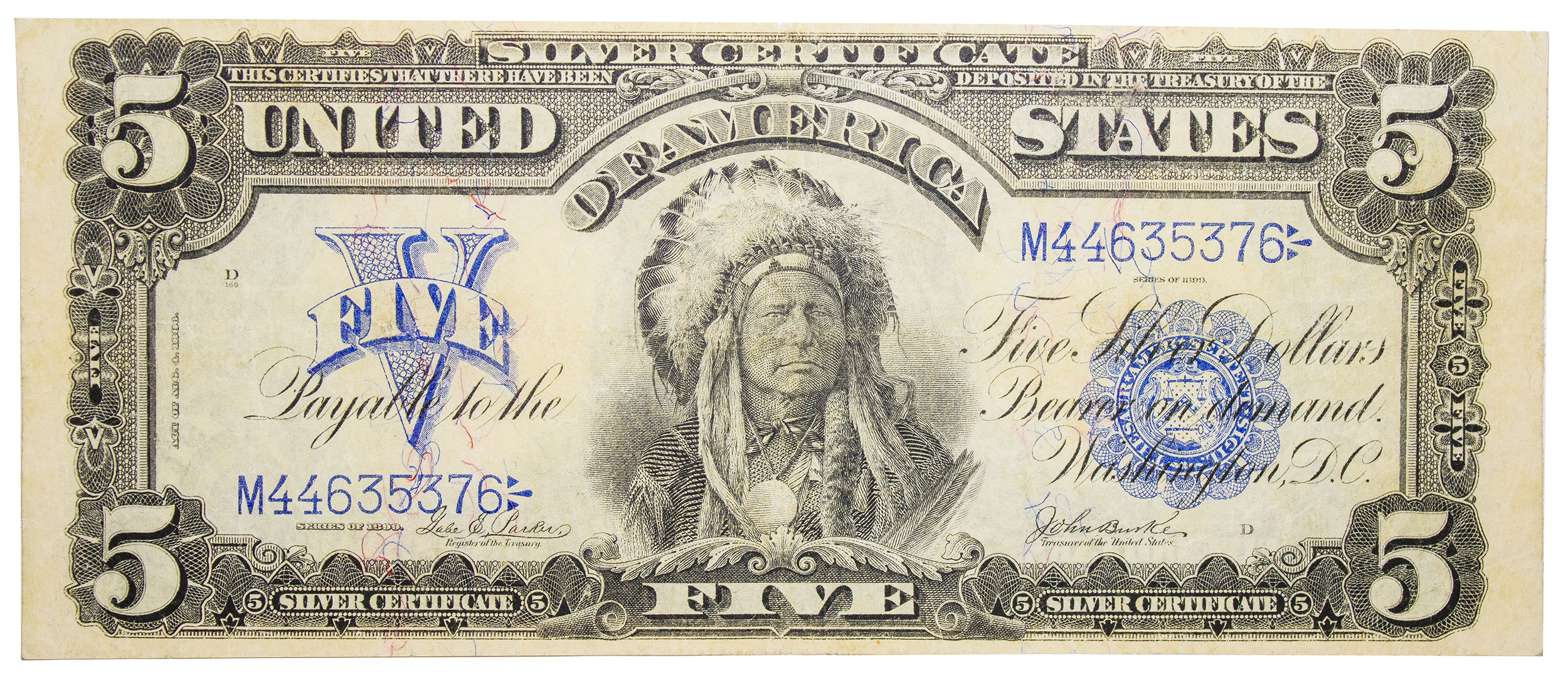 VF+ Series 1899 Oncpapa $5 Silver Certificate