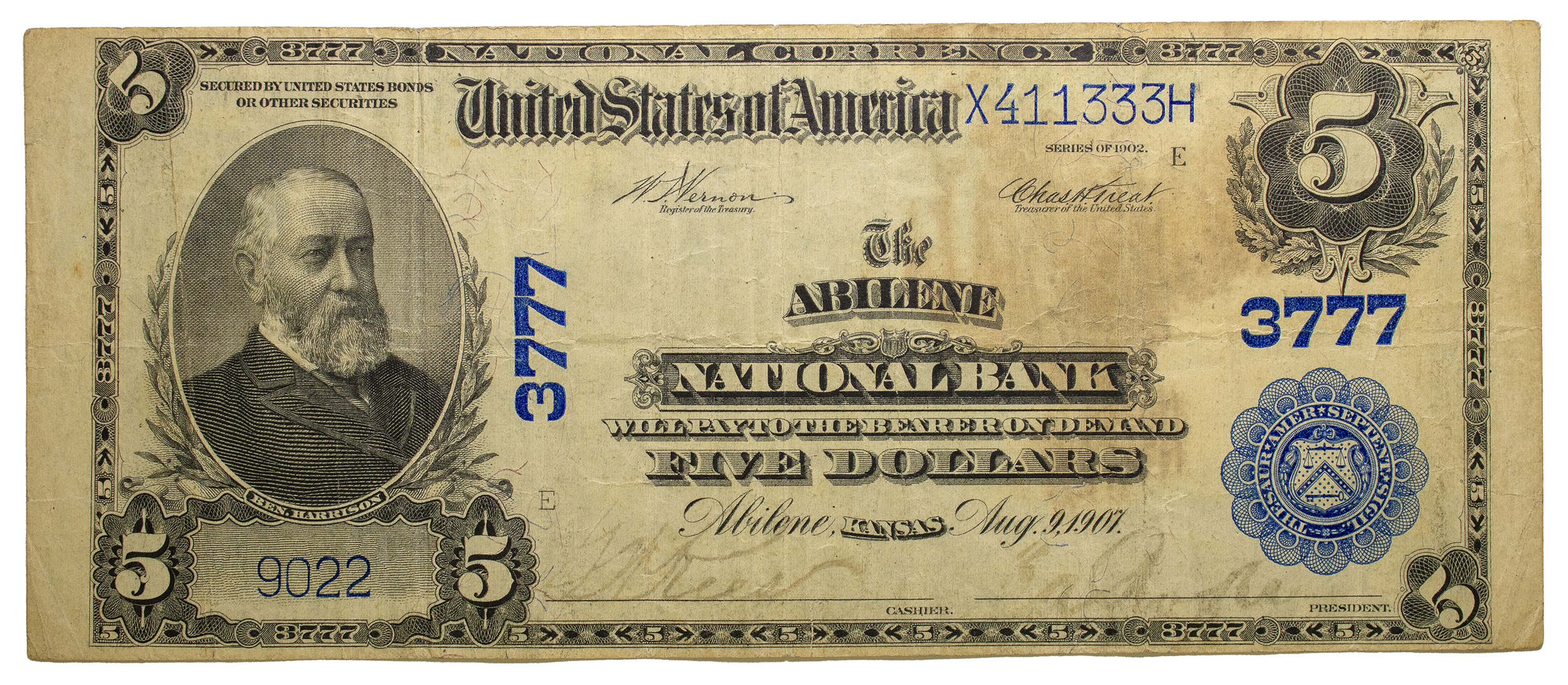 Kansas. VF Details Series 1902 $5