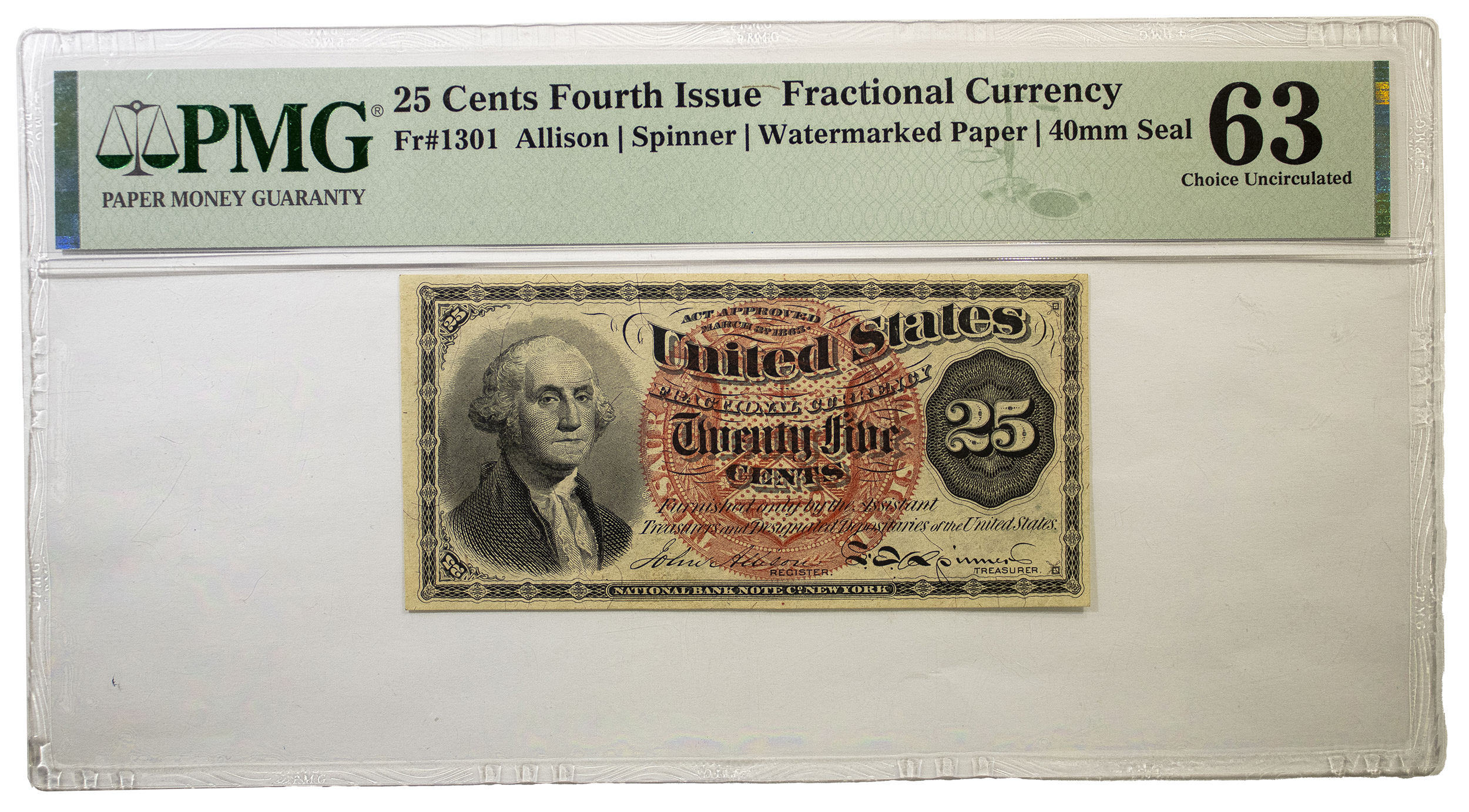 PMG Choice Unc-63 25-Cents Fractional Currency