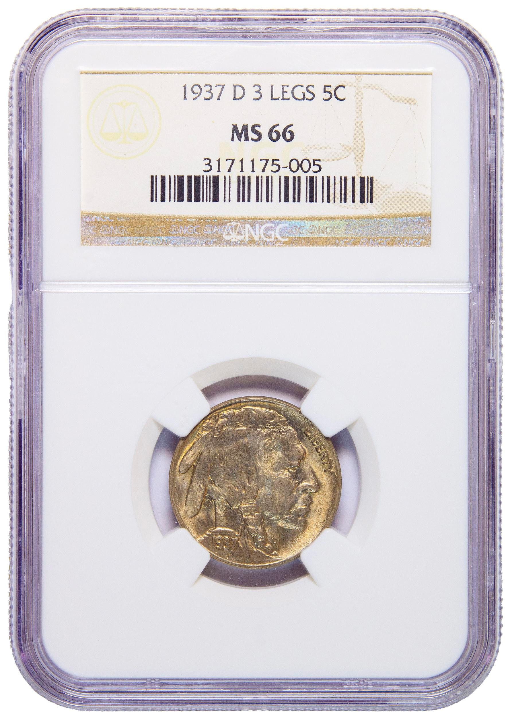NGC MS-66 1937-D Three-Legged Buffalo Nickel