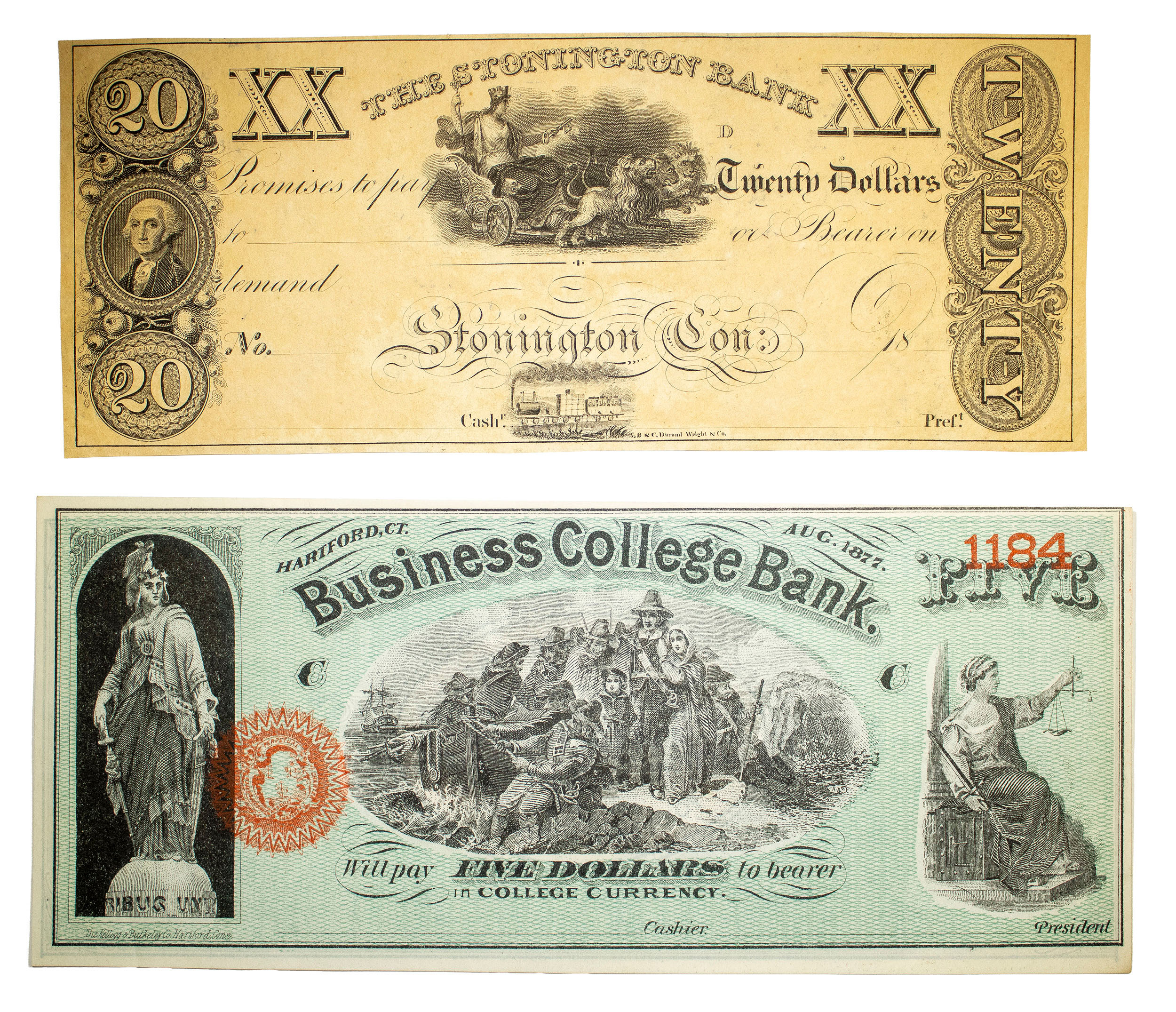 Connecticut. Mixed Bank Note and College Note Duo
