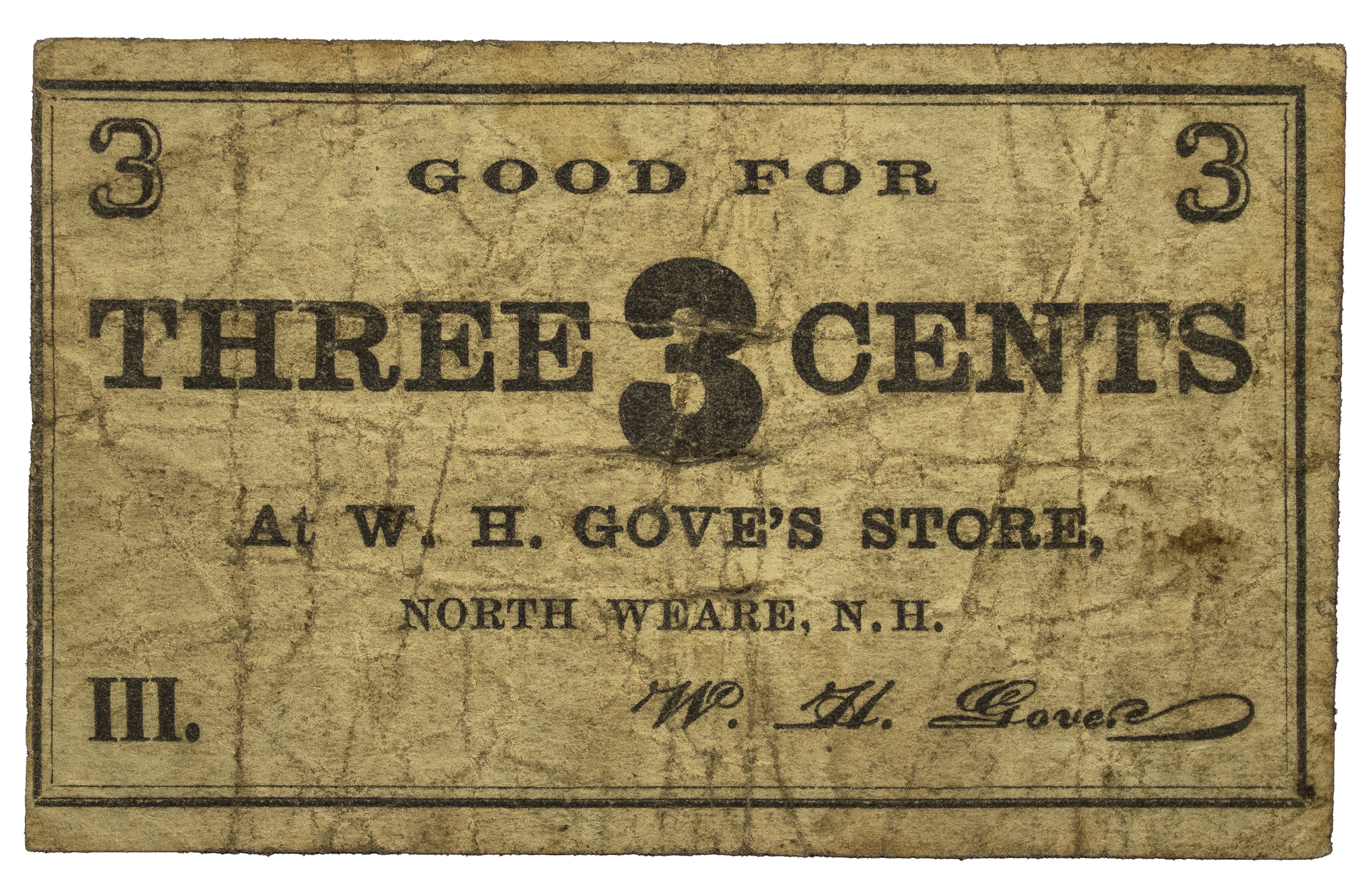 New Hampshire. North Weare. Fine Three-Cents Note