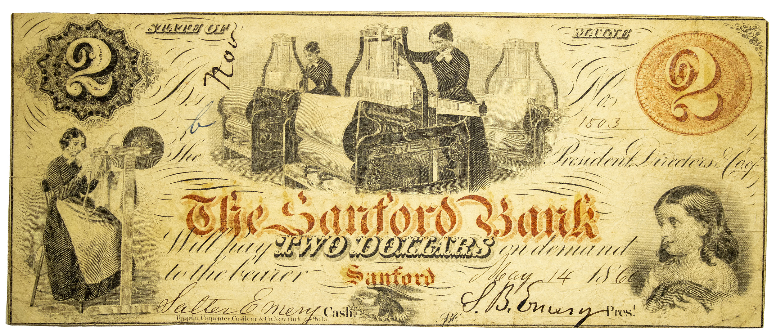Maine. Sanford. 1860 $2 Obsolete Note