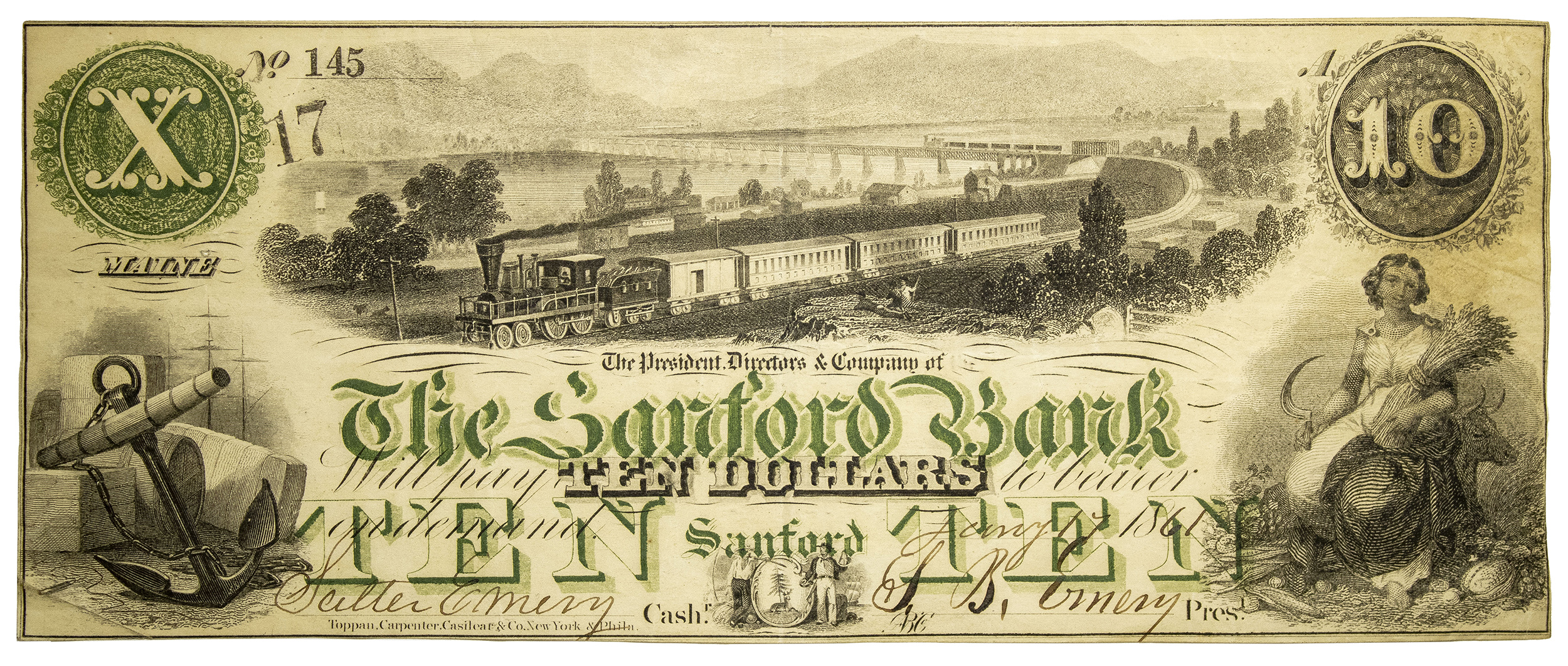 Maine. Sanford. 1861 $10 Obsolete Note