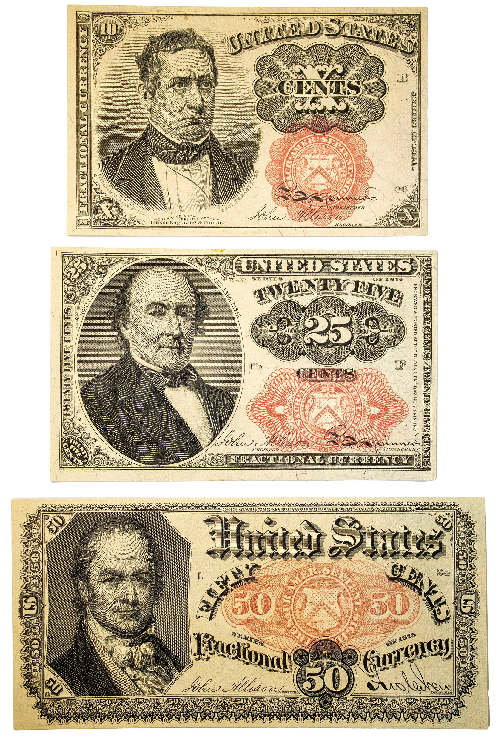 Fractional Currency. Trio of 5th Issue Notes