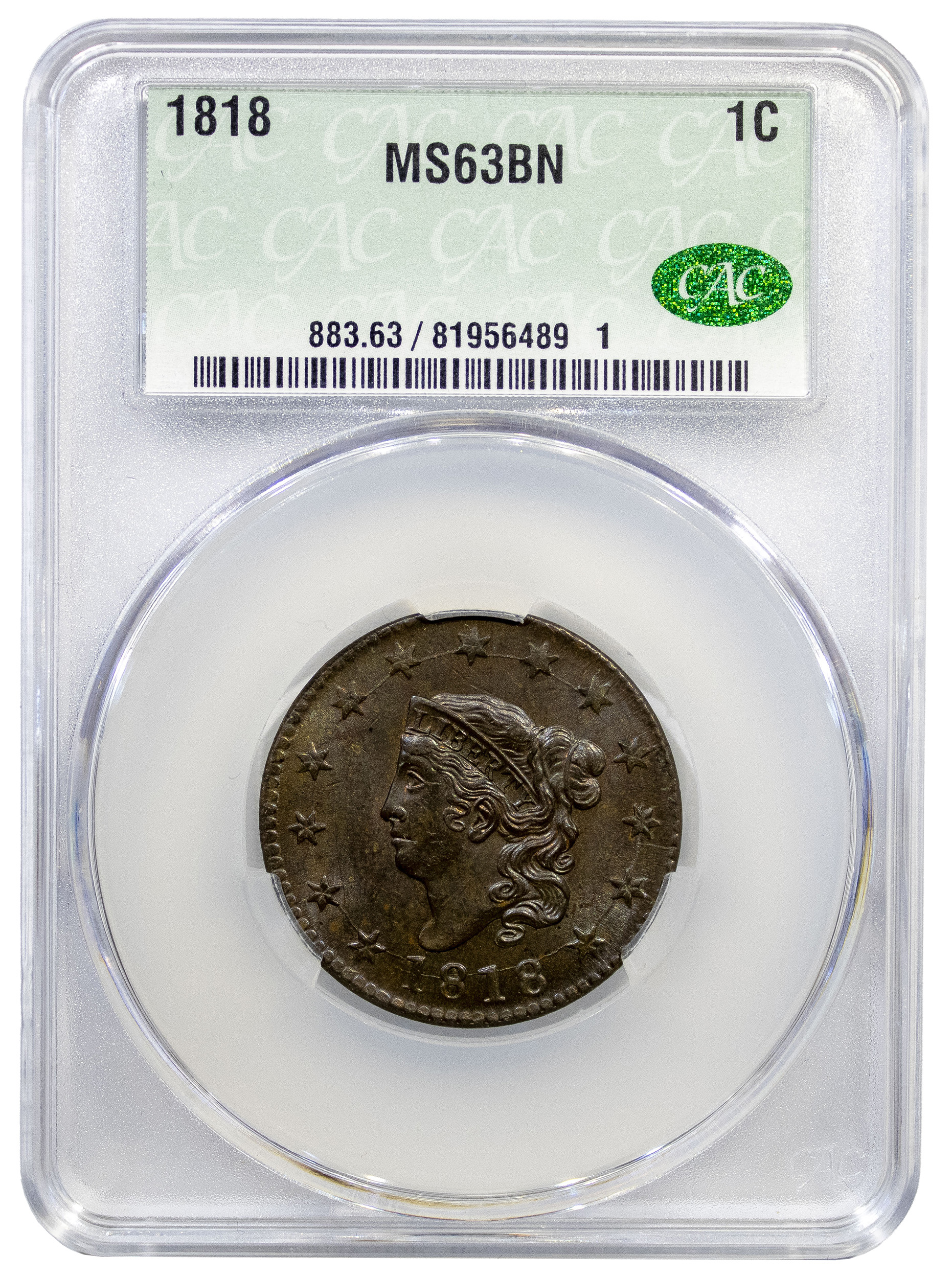 CACG MS-63 BN 1818 Large Cent