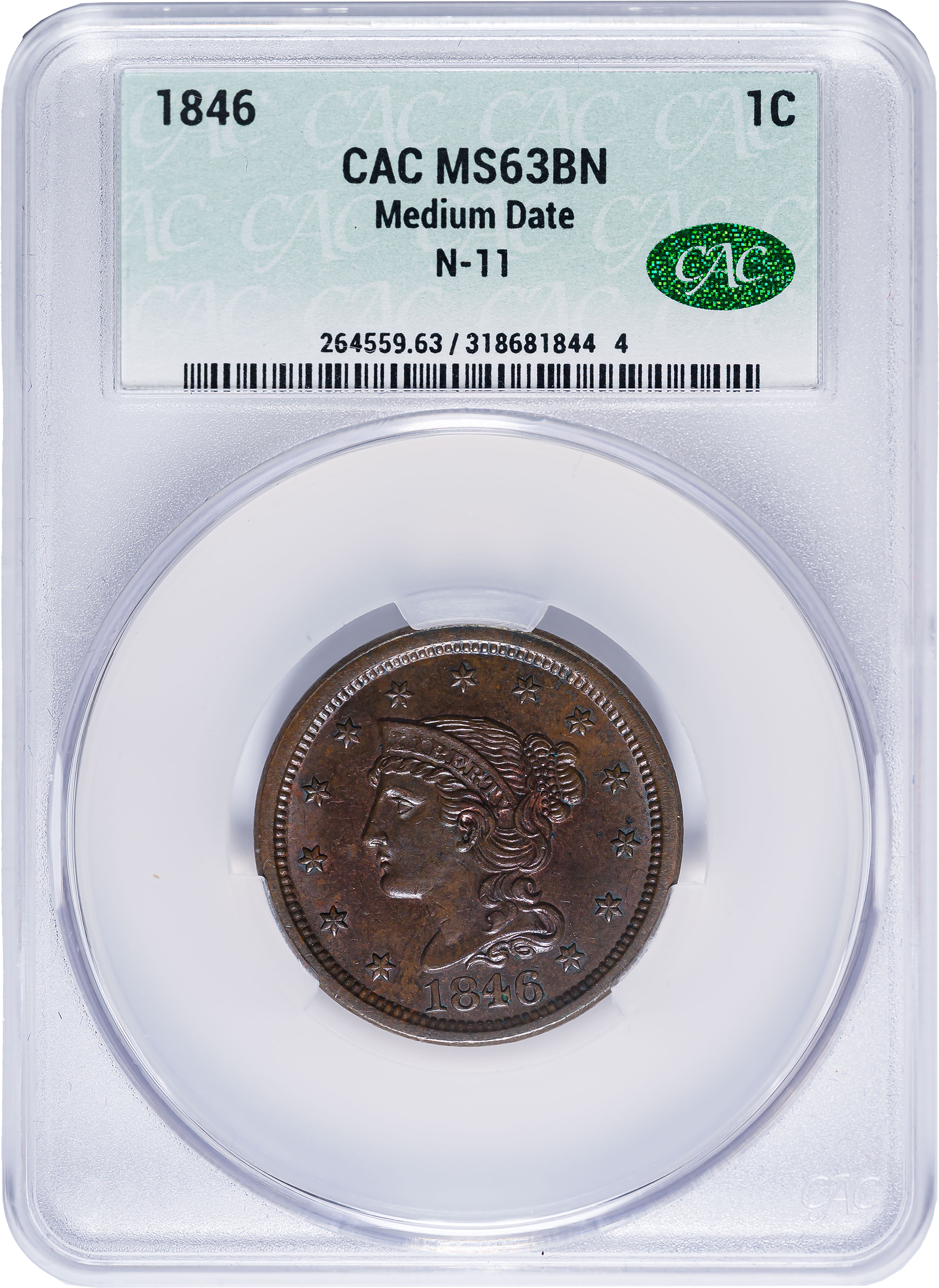 CACG MS-63 BN 1846 Medium Date Large Cent