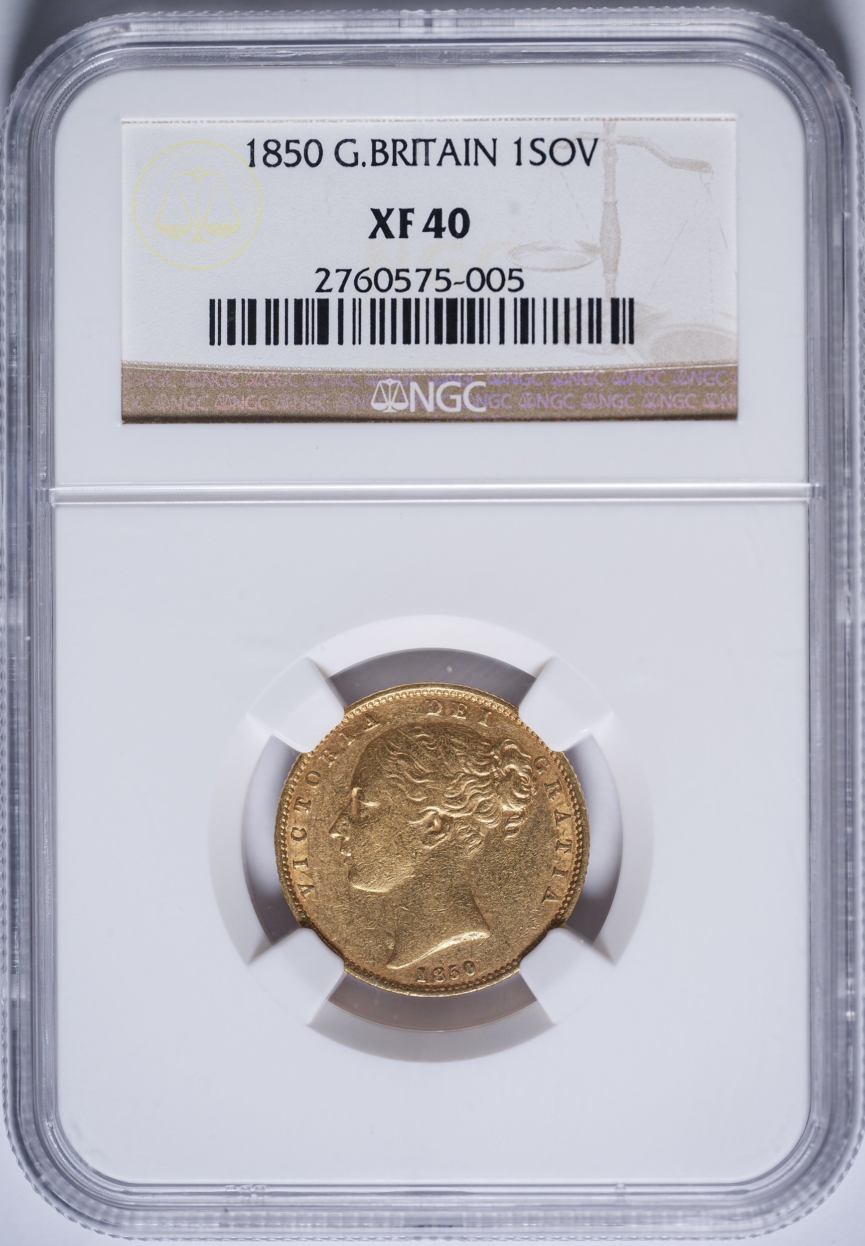 Great Britain. NGC EF-40 1850 Gold Sovereign