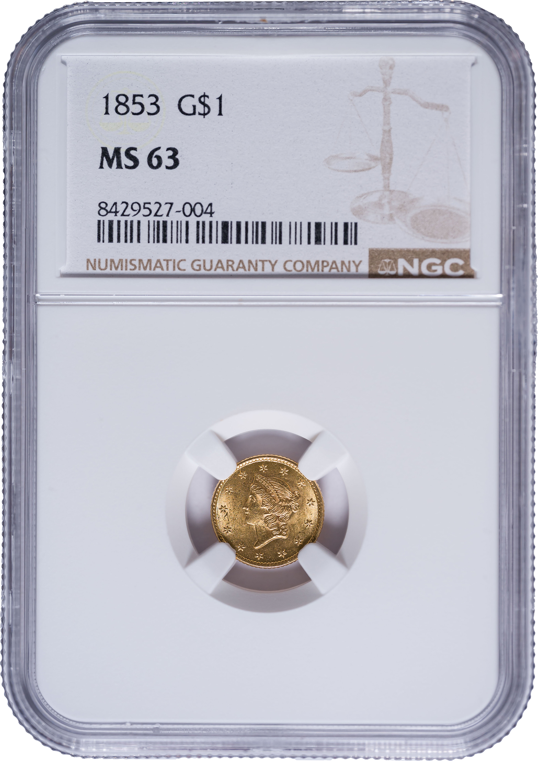 NGC MS-63 1853 $1 Gold